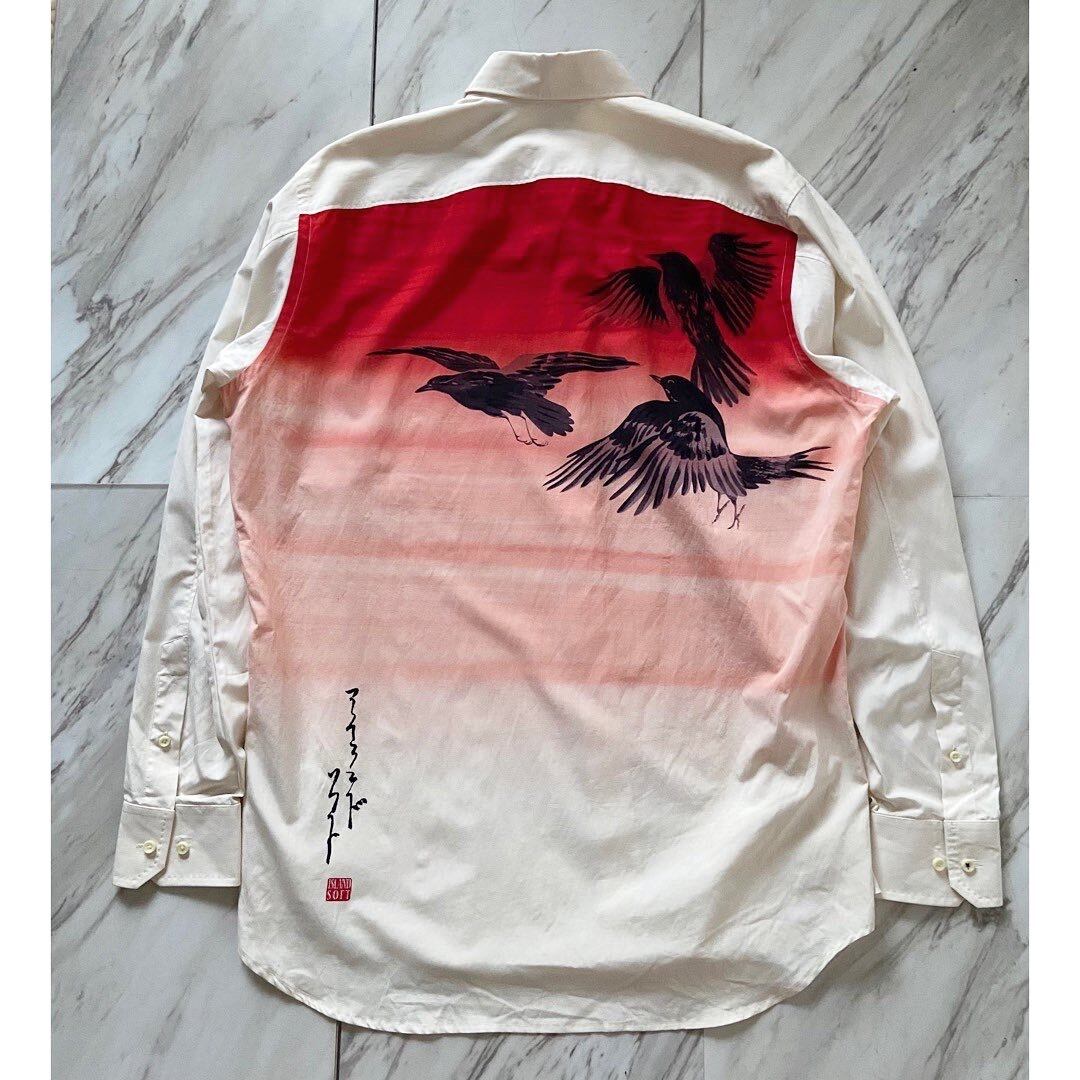 90s〜00s island soft crow printed silk cotton shirt
