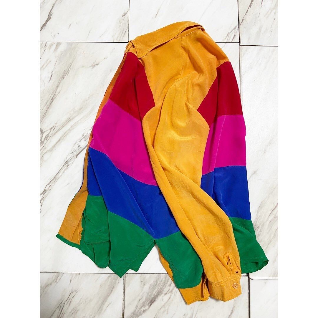 90s colorful border rayon shirt