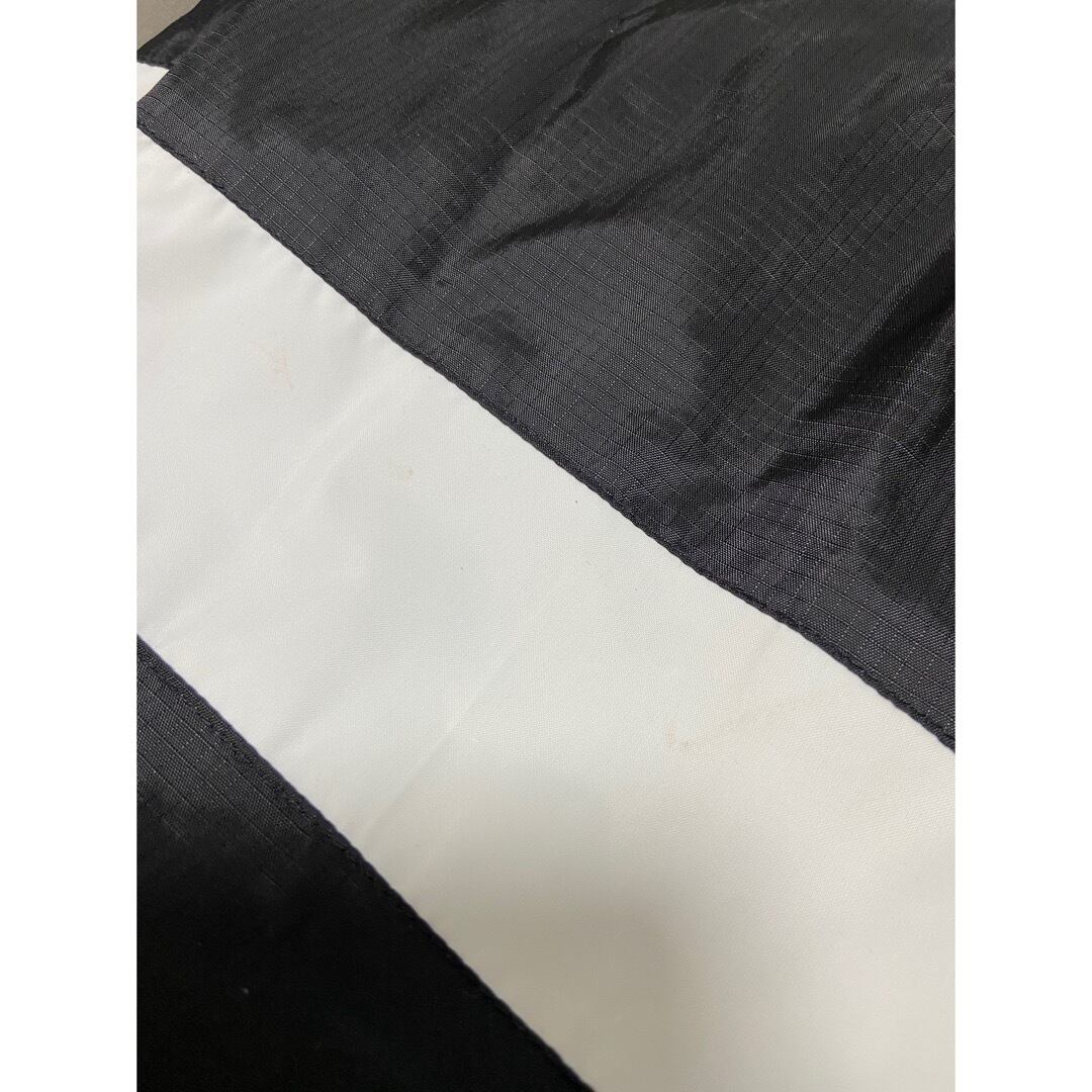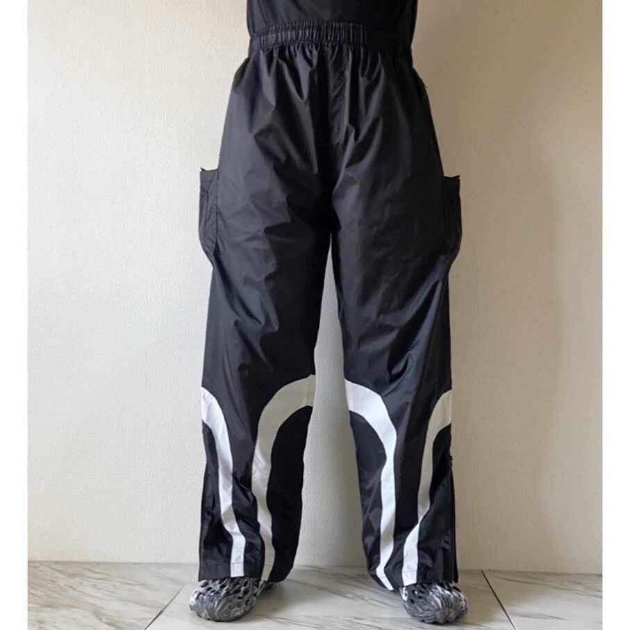 フロント膝から裾まで、異素材のホワイトアーチが縫われたキココスタディノフを彷彿とさせるデザイン ブラックナイロンリップストップとホワイトノンリップグラデーションがとても良い バック膝裏にはライン デザインが左右で繋がる様に設計されています