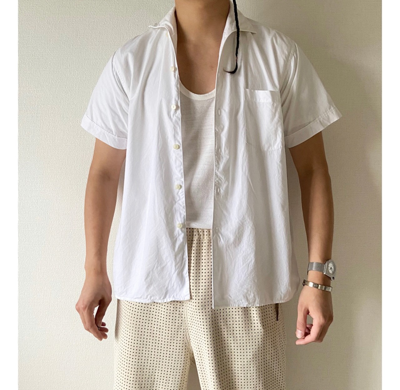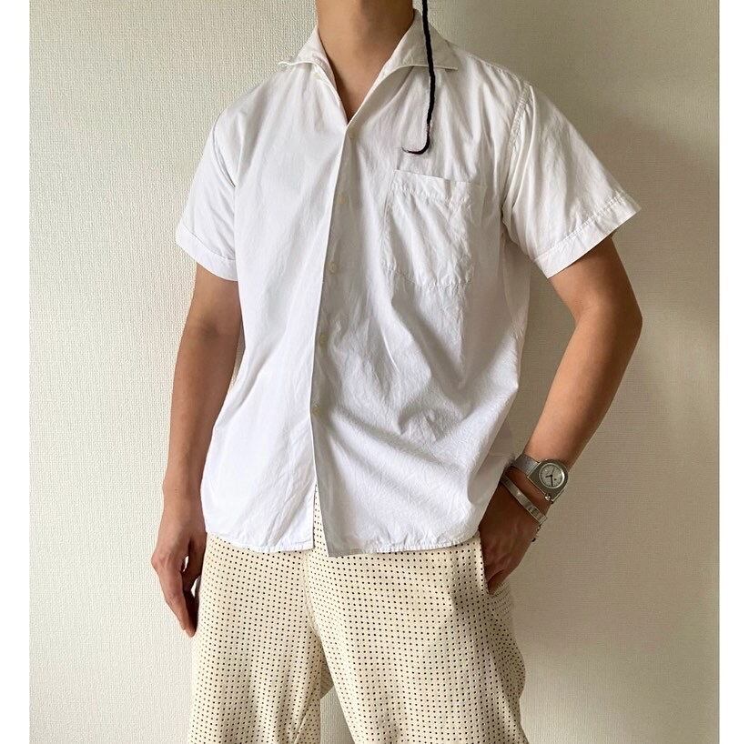 Euro vintage 50s 〜 60s white cotton shirt "shark collar"