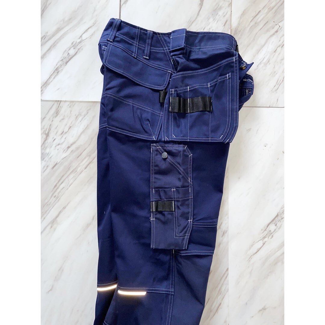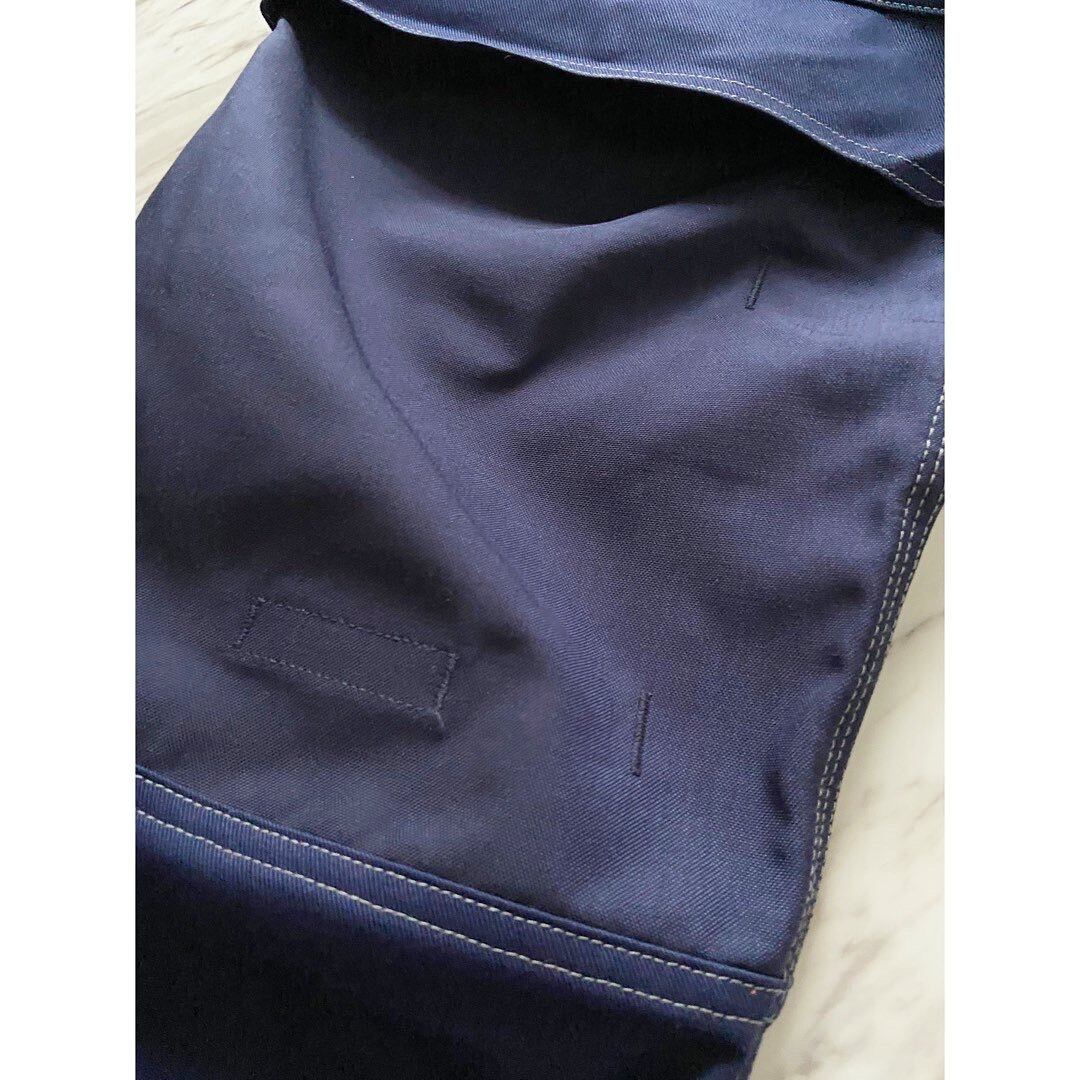 膝を付ける作業が多い仕事着なのかニー部分だけハードナイロン的な素材となっています ダークネイビーにホワイトグレーのステッチが映えますね