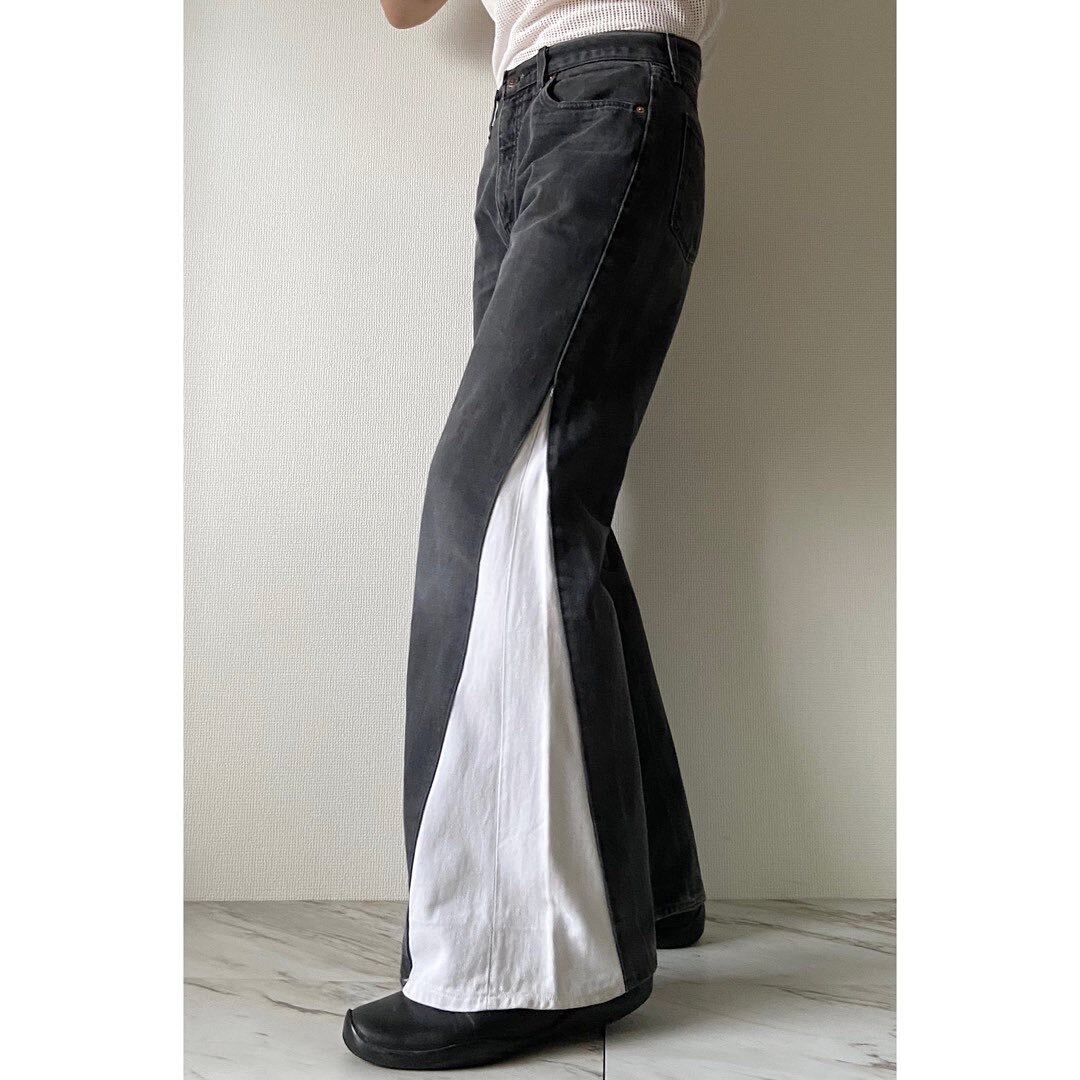1996's Euro levi's 615 black & white switching flare denim pants "remake"