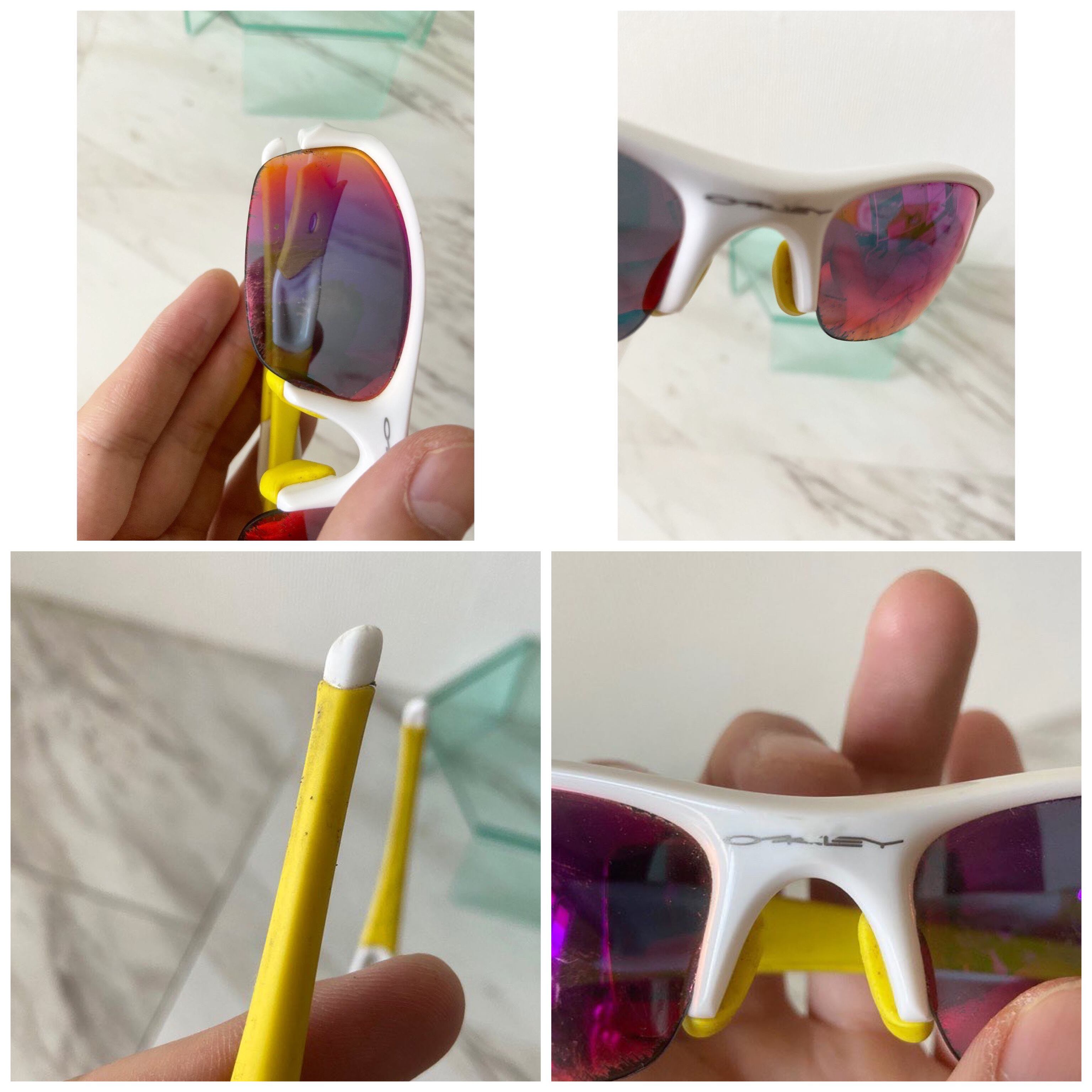 レンズに小傷 白のプラスチック部分に小汚れ小傷 黄色のラバー部分に小汚れ こちらはブラシなどで取れそうです