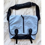 表面はナイロンポリの水色とグレーの混ざった様なアイスグレー 裏地(バックを覆う部分)はpvc系の完全防水仕様