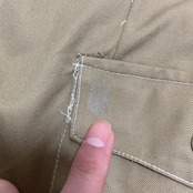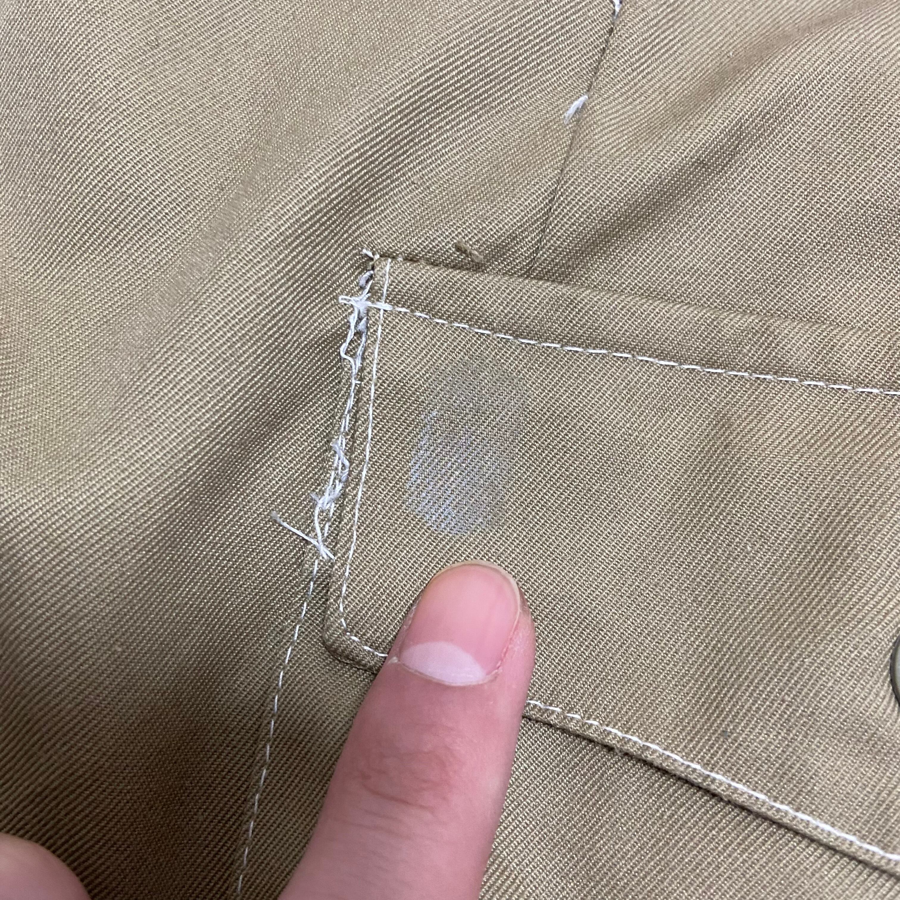 ベルトループ付近にシミ 右ポケット横にブリーチ跡 左ポケット付近に小汚れ 後ろポケットにノリ跡