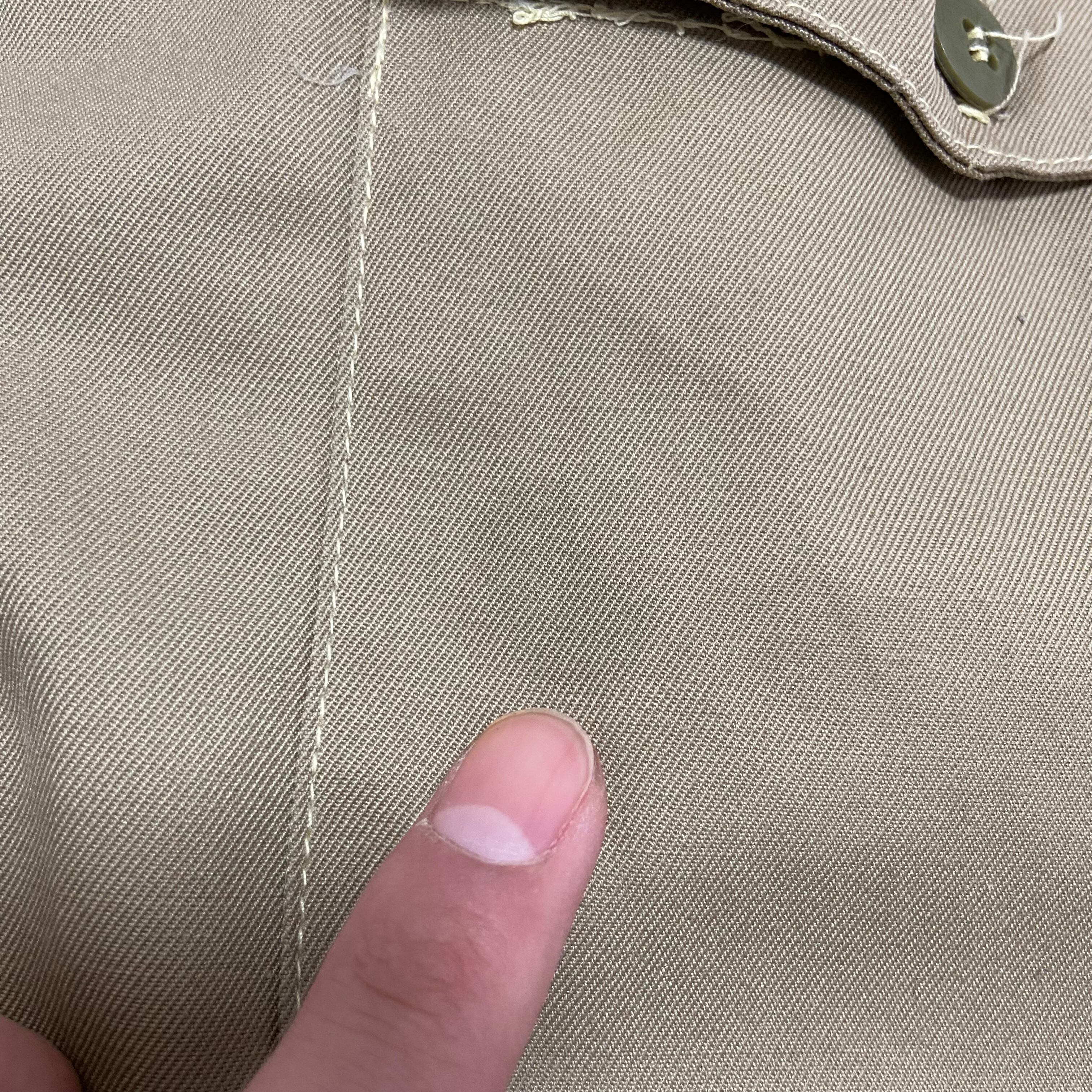 左裾にかなり薄いシミ 両ケツポケに薄いシミ 裾のステッチズレ 左ケツポケ下に小汚れ