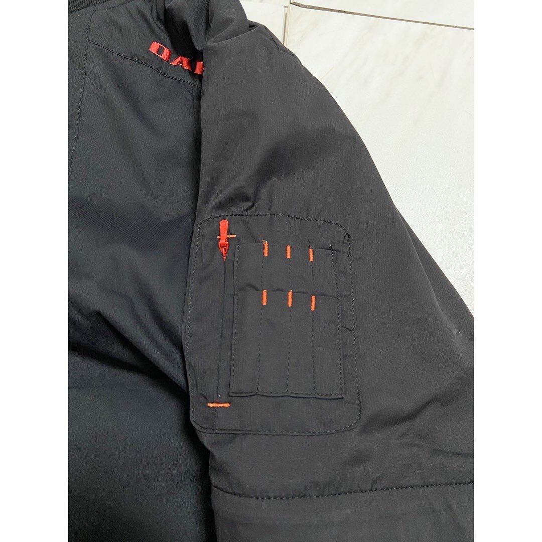 デタッチャブル仕様のアーム クロスする様な変則的なリブネック 所々にオレンジのステッチ 刺繍ロゴは赤となります アームにコンシールファスナー仕様のシュガーポケット 脇には通気口