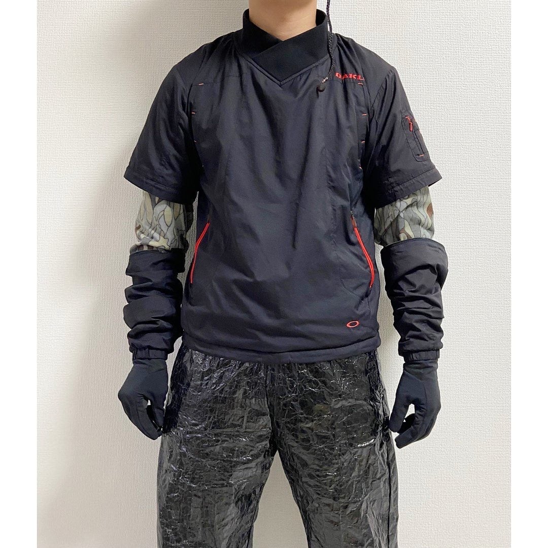 多少強引ですがポケットに全体をパッカブル感覚で収納できます ポケットジップはオリジナルでオークリーロゴとなっています