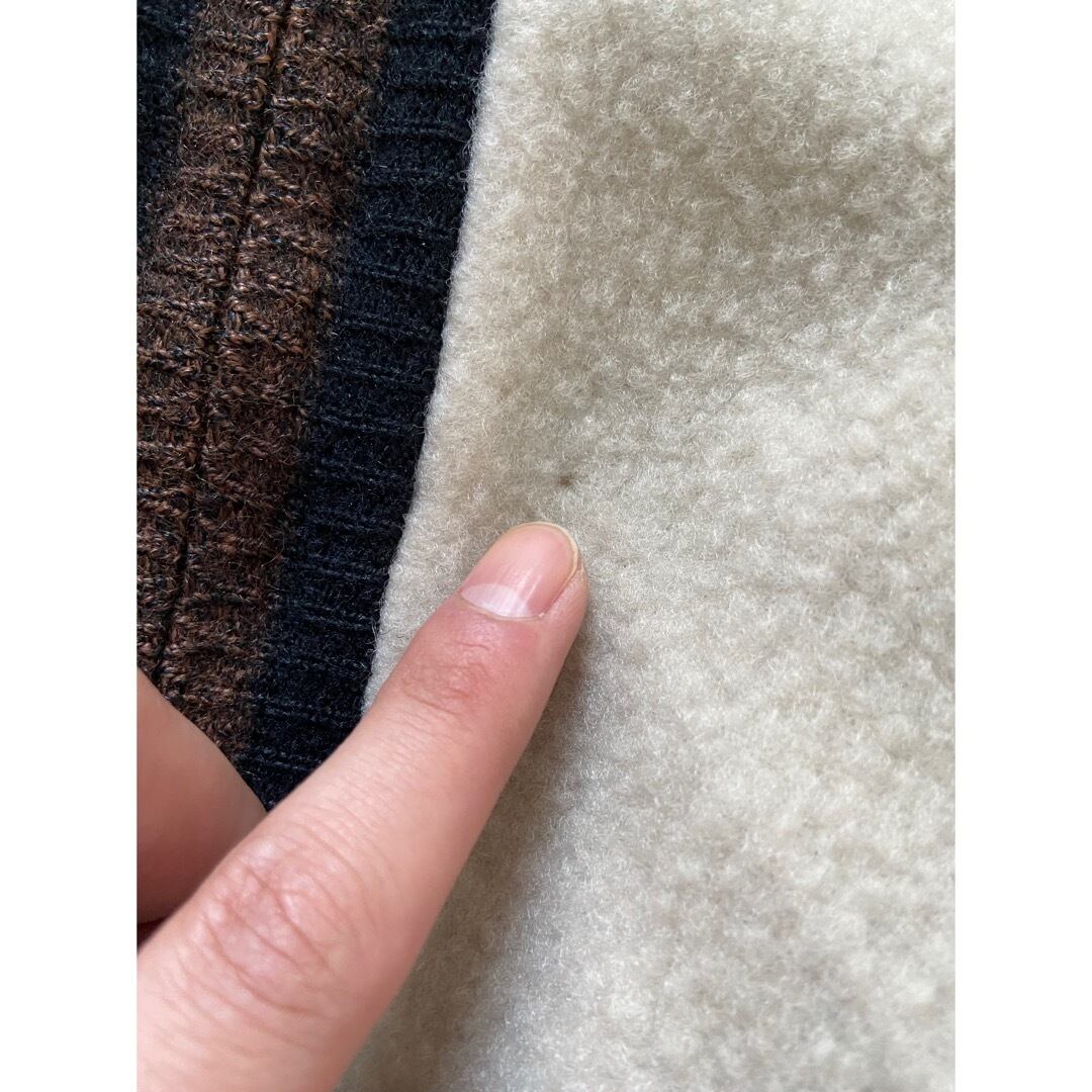 茶色面 右アームにほぼ目立たない程度の水シミの様な物二つ 右アーム脇内側に糸つれ お腹に極小の点シミ