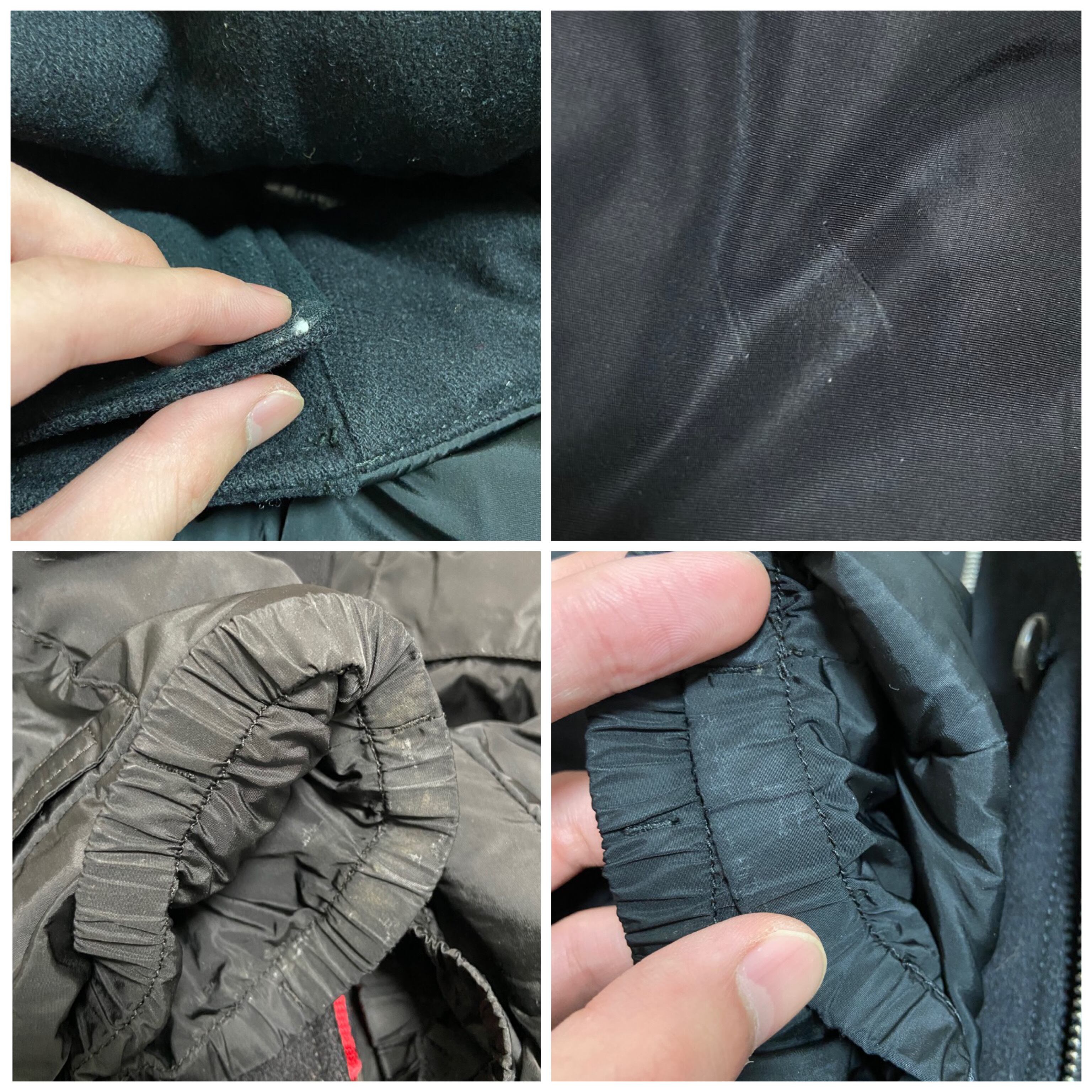 襟の縁にとても小さなダメージ 左アームにほぼほぼ目立たない程度の小汚れ リブに小汚れ ウエストドローコードに若干ですがほつれ感 とても綺麗な状態です