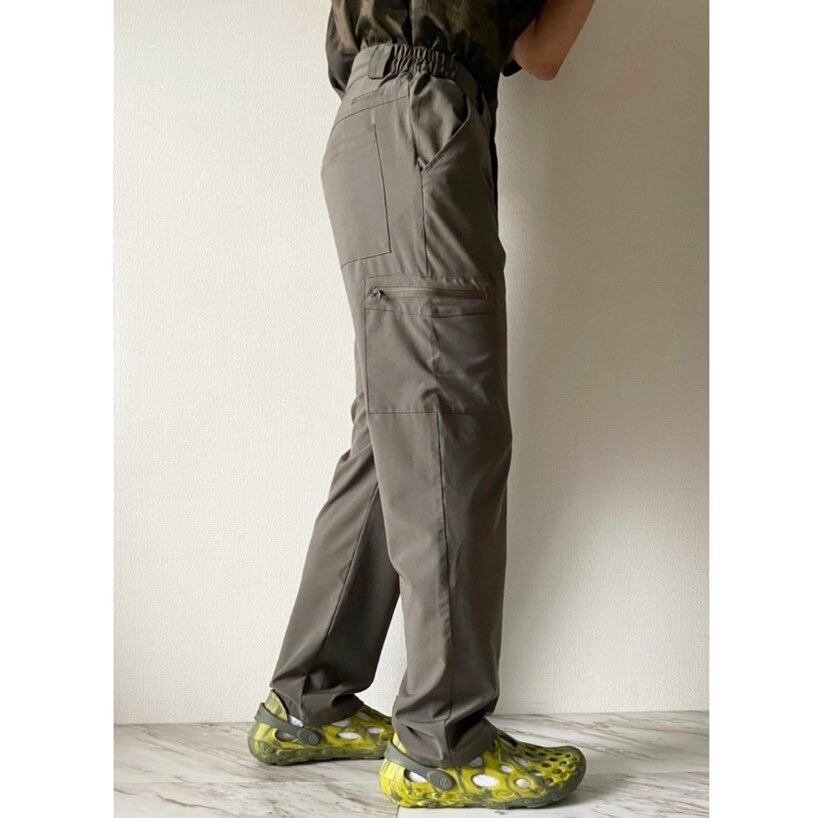 ウエストはゴム入り サイドポケット他に 右腿にカーゴジップポケット お尻ポケット上に ロゴ入り