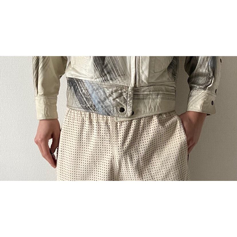 90s〜00s made in spain marble silver blue white design leather blouson