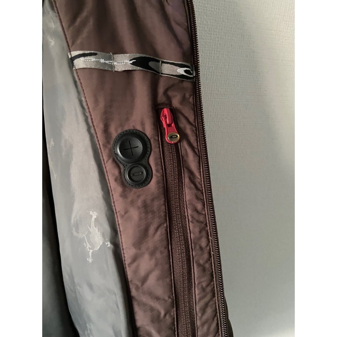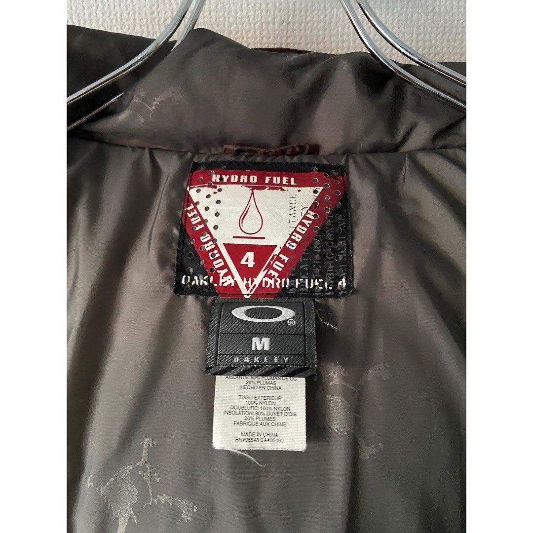 かなり高めに設定された首元 ボリューミーなマグネット付きのフーディー 被ると内側に水色のオークリーロゴ フロント誘いにもあります