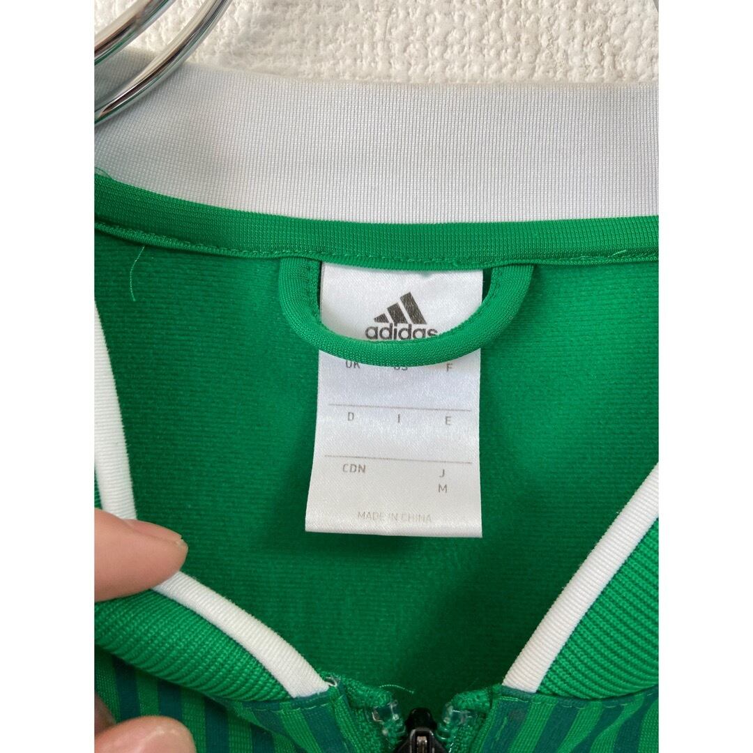 グリーン×レッドのメキシコカラー フロントは不規則なストライプ 裾にアディダスタブ 3サイドライン