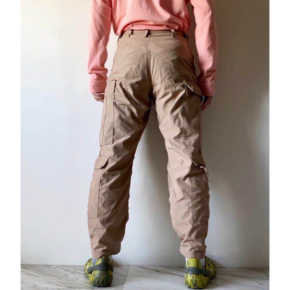 size : 表記s/s(実寸m程度)ウエスト(65〜76まで調整可能)股上29(ウエスト最上部から)股下72.5わたり30程度裾幅20閉じると16サイドの全長99程度