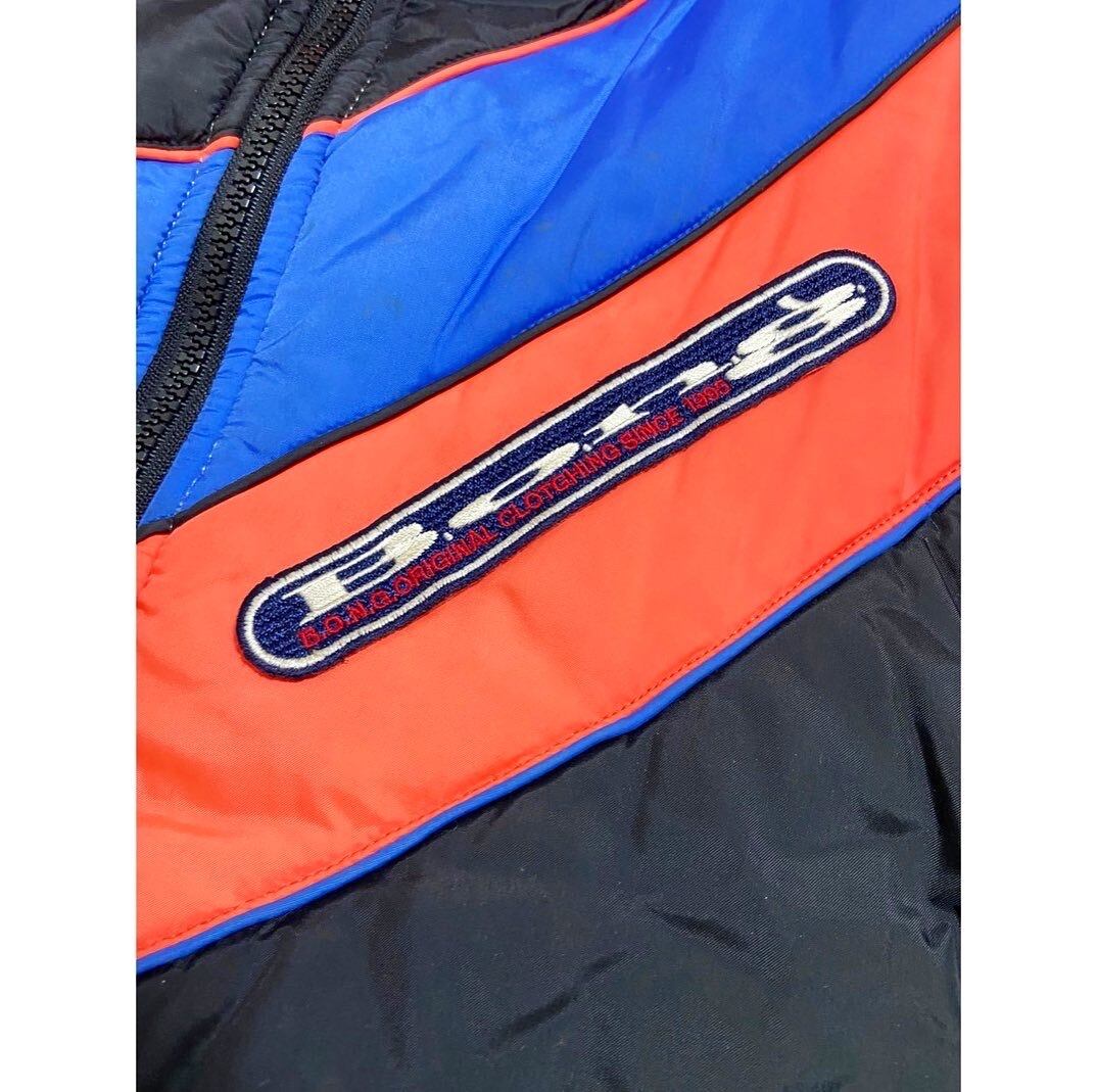 ヴィヴィッドオレンジ、ロイヤルブルー、ブラックのバイヤス状の切り替え パイピング使いも良し ハリのあるナイロンボディー