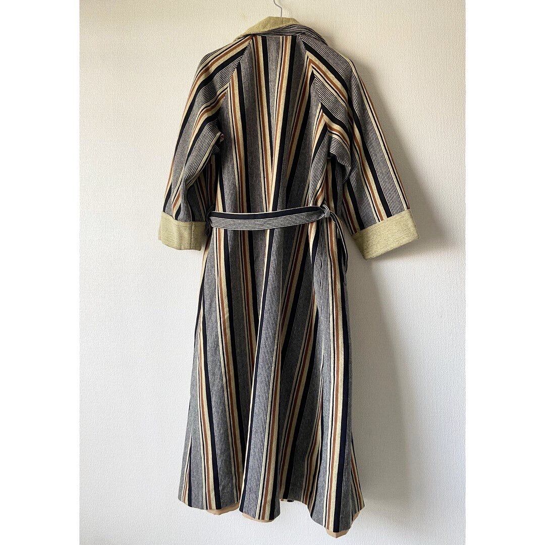 80s 〜 90s made in japan sasage company made mulch stripe long gown coat