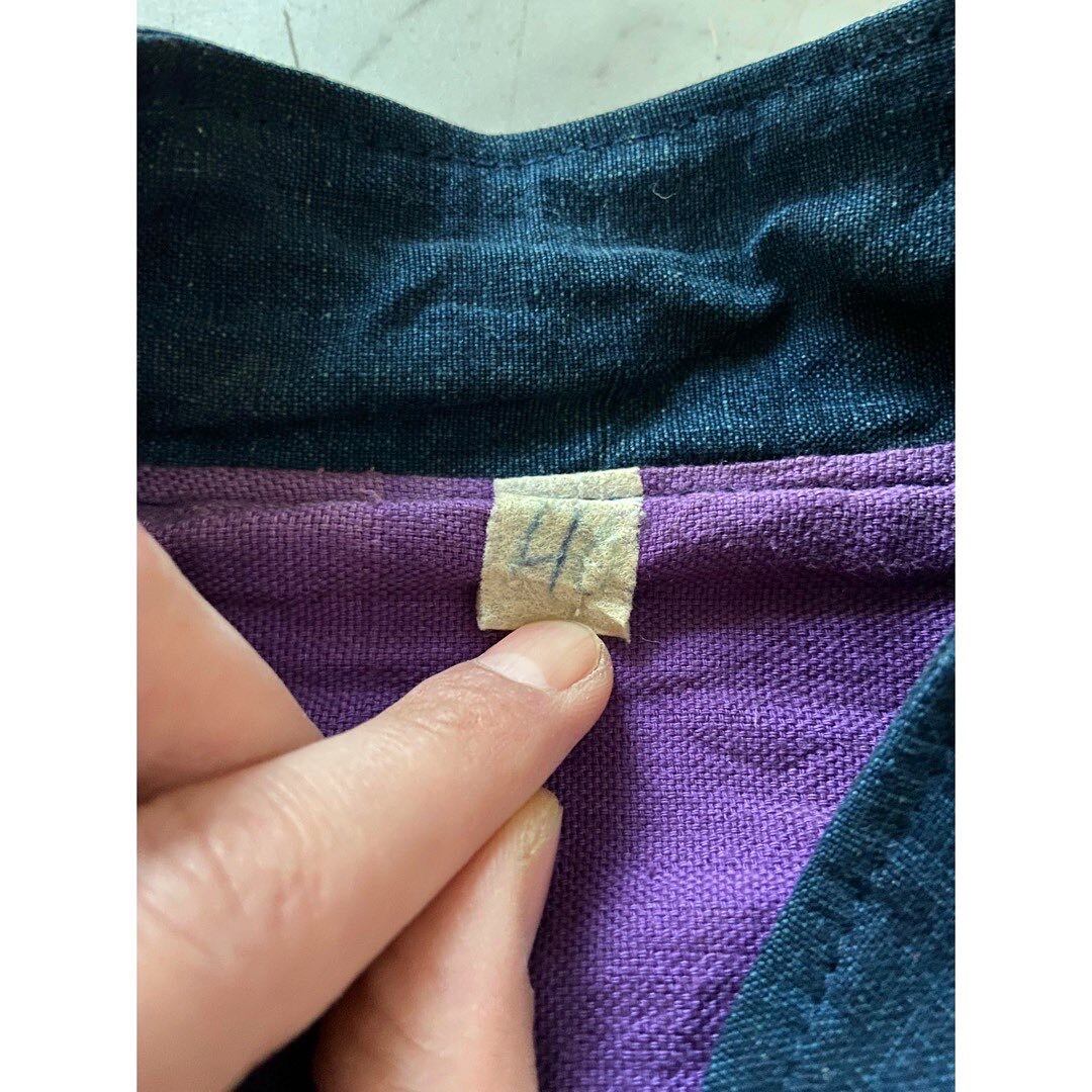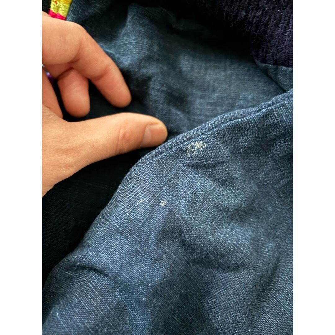 インド綿の様なインディゴコットン 胸から肘に掛けた立体的な織りのカラフルなパッチワーク 肘から袖先に掛けたラインも良し