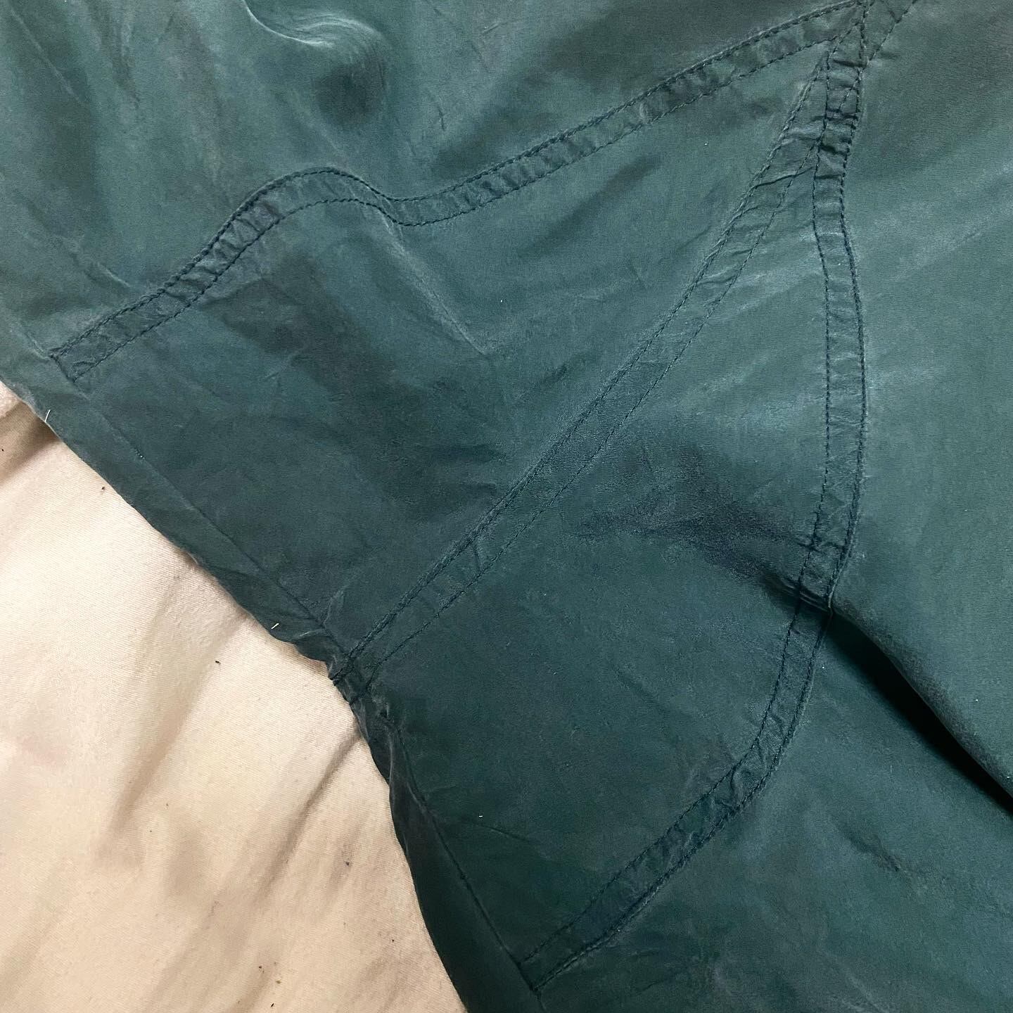 シルク特有のモヤがかかった様な表情のダークグリーン 日焼けで色落ちしたリブ部分との緑色の濃さの対比が良いですね