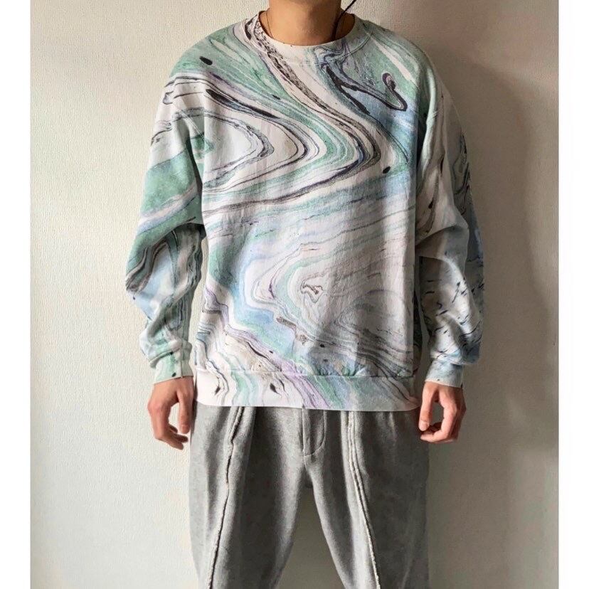 別名"墨流し"と呼ばれる、もとは日本の染色技術を用いて染められた芸術性すら感じられるマーブル模様 ミントグリーン×パープル×ライトブルー×ホワイト×ブラック