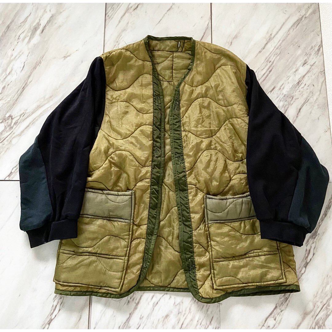 M65のライナーのリメイク物 アーム部分がバイカラーのスウェット地になっています 更にバイカラーのキルティングポケットが付けられています