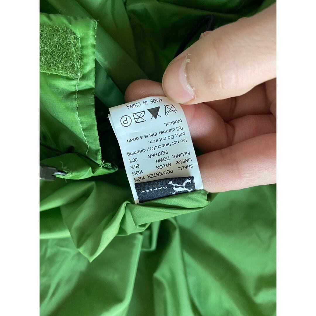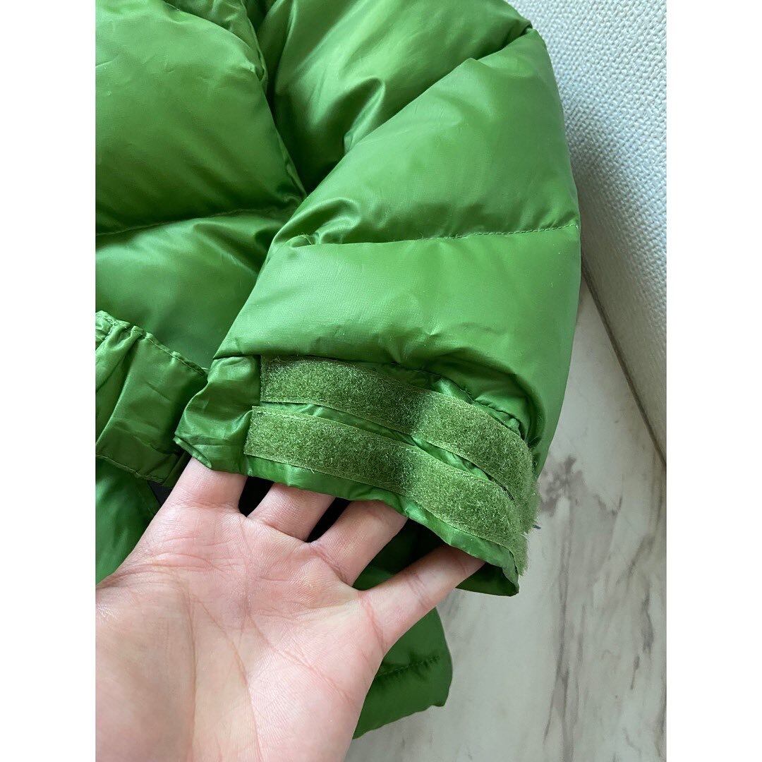 変則的なステッチデザイン 発色の良いライトグリーンポリエステルシェル 首元にマッドグレー刺繍ロゴ フロント、裾にジップポケット