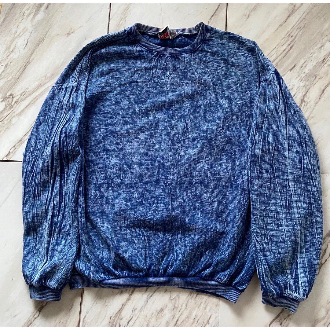 インディゴ染め 古着だとニットで多くみられるインディゴ染め トレーナー型のカットソーに施されたパターンは初見