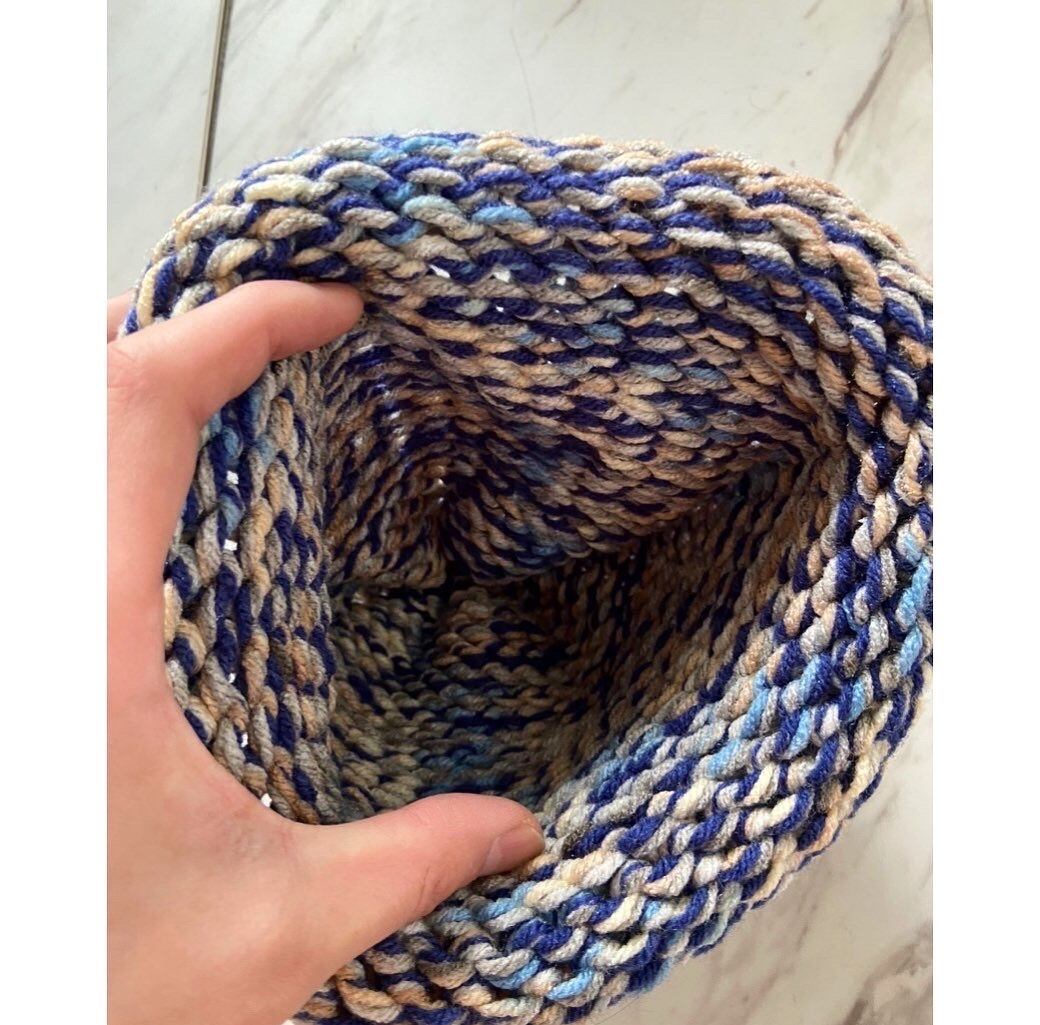 ブルー×ライトブルー×ベージュ×グレー×ホワイトのウールミックスニッティング
