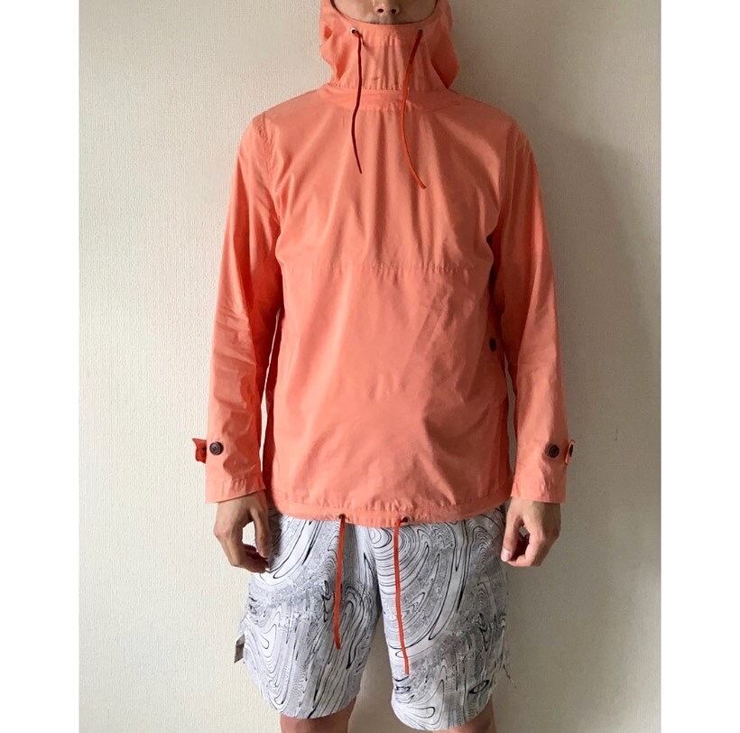 ミリタリースモックパーカーに確実に影響を受けてあろうこちら 軍物特有のガシガシとした厚手のコットンから薄手のサラッとした化繊生地に変更 かなり高めに設計された首元 ヴィンスウェでよく見られる後付けパーカーの様なフード部分