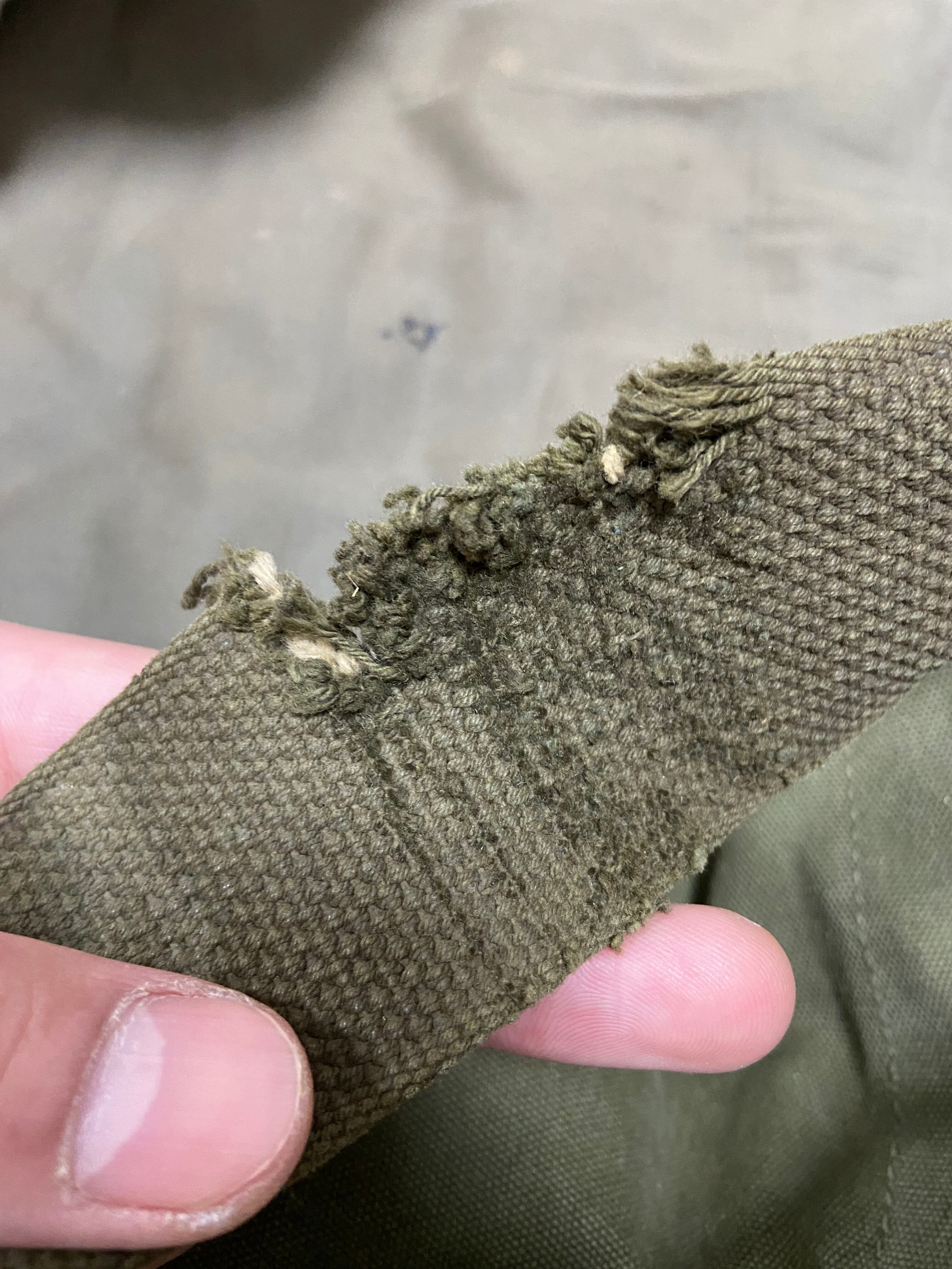 50年代のファイヤーマンパンツやダッフルバックパックなどの生地の余りで作られたものでしょうか?