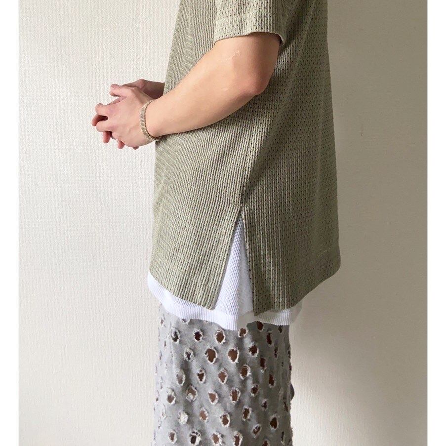鮮やかなミントグリーン 裾にはかなり深めのスリット レイヤードも楽しめそうです