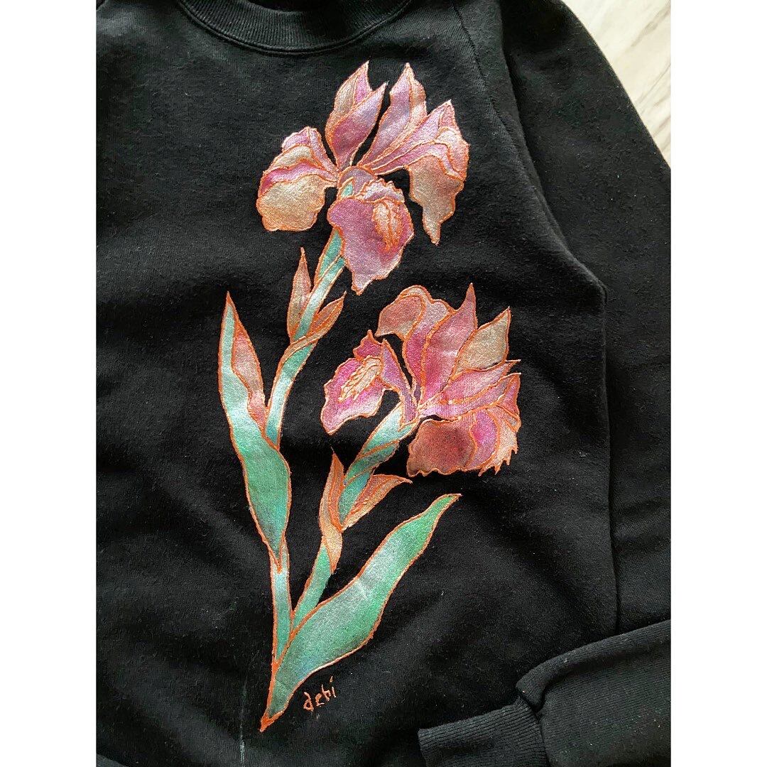 立体的なハンドペイント 2本の花が描かれています 胸元からズレたペイントが粋ですね