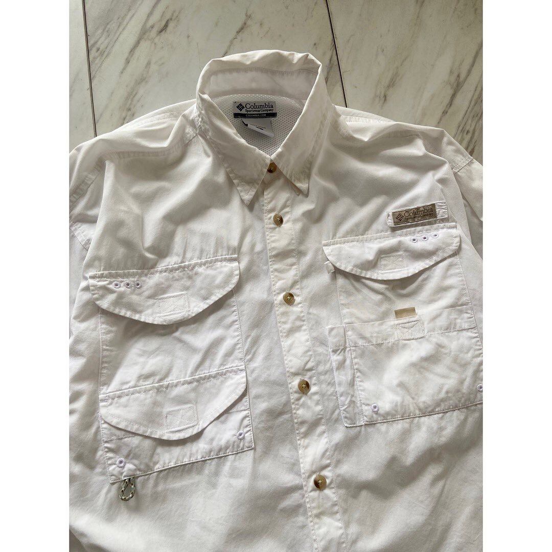 90s〜00s columbia mulch pocket design white cotton fishing shirt