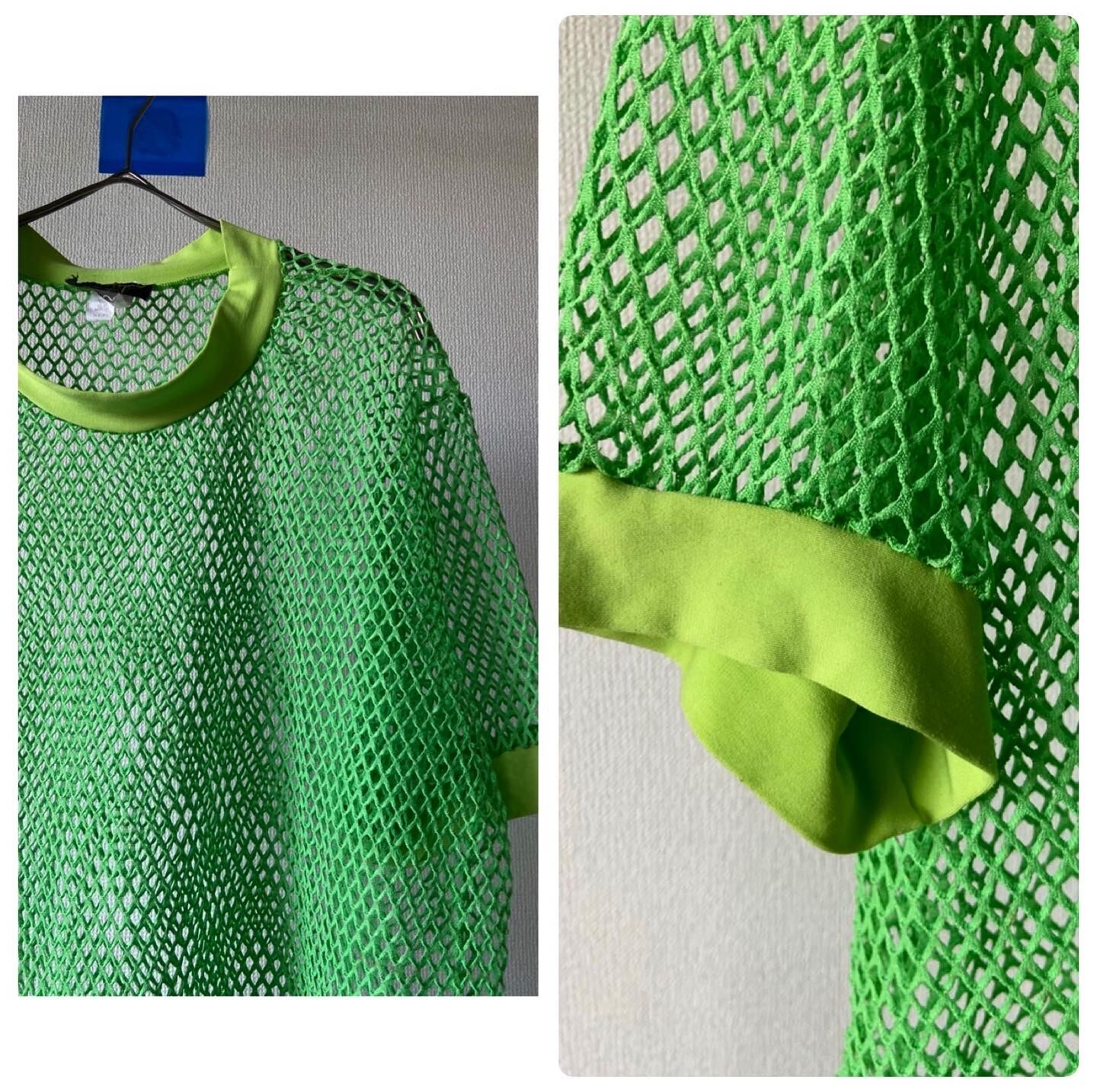 タグが切れて見えにくいですが2xl〜3xl表記のオーバーサイズ この手のメッシュシャツで大きめは非常に珍しい 袖口リブはキュッとしていて全体で見た時に締まります