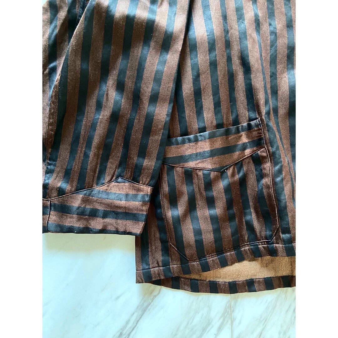 Euro vintage brown & black stripe shark collar 3-pocket pajama shirt