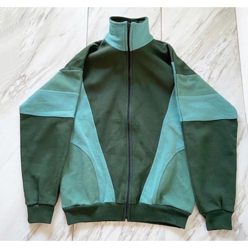 80s Euro acrylic switching moss green × emerald blue high neck track jacket