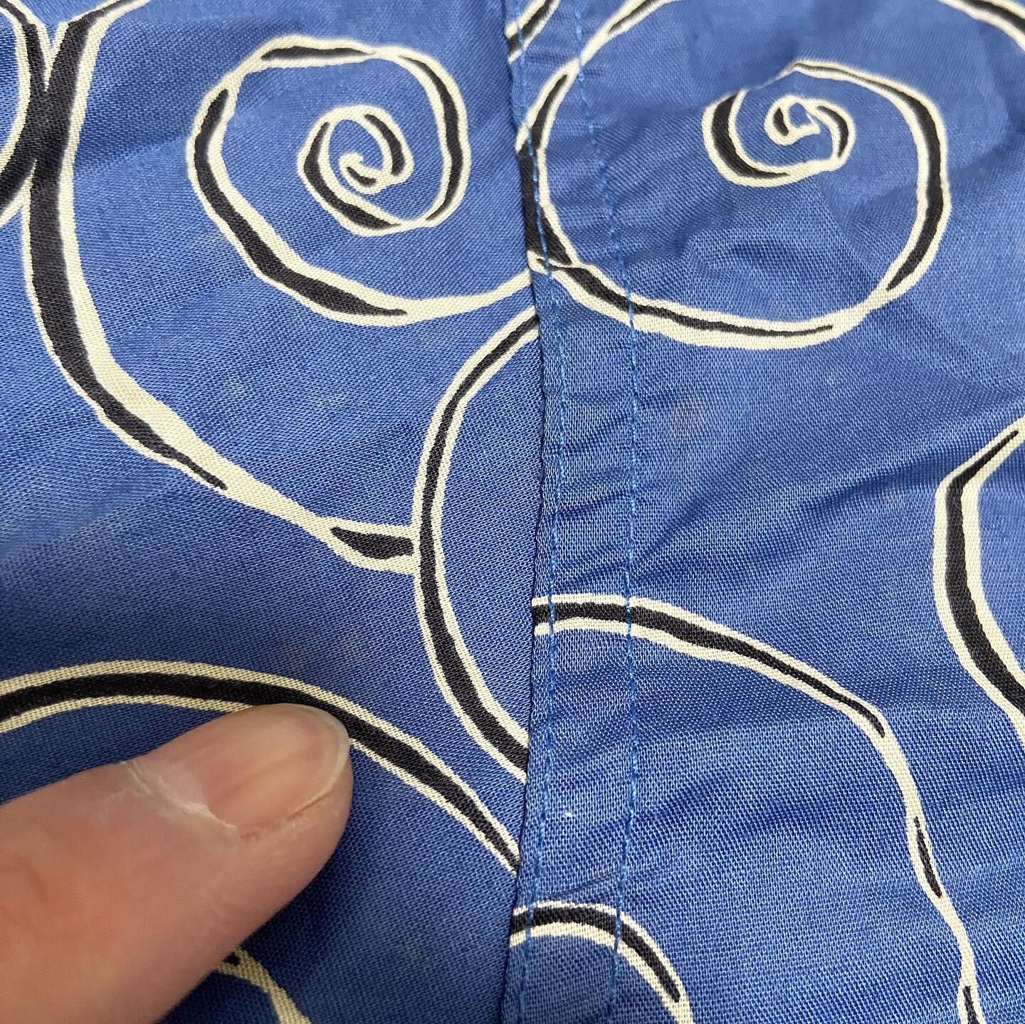 ストライプシャツ飽きた方におすすめ その手のサックスブルーカラーに 水 風 つる草 渦柄が乗った面白い柄シャツ
