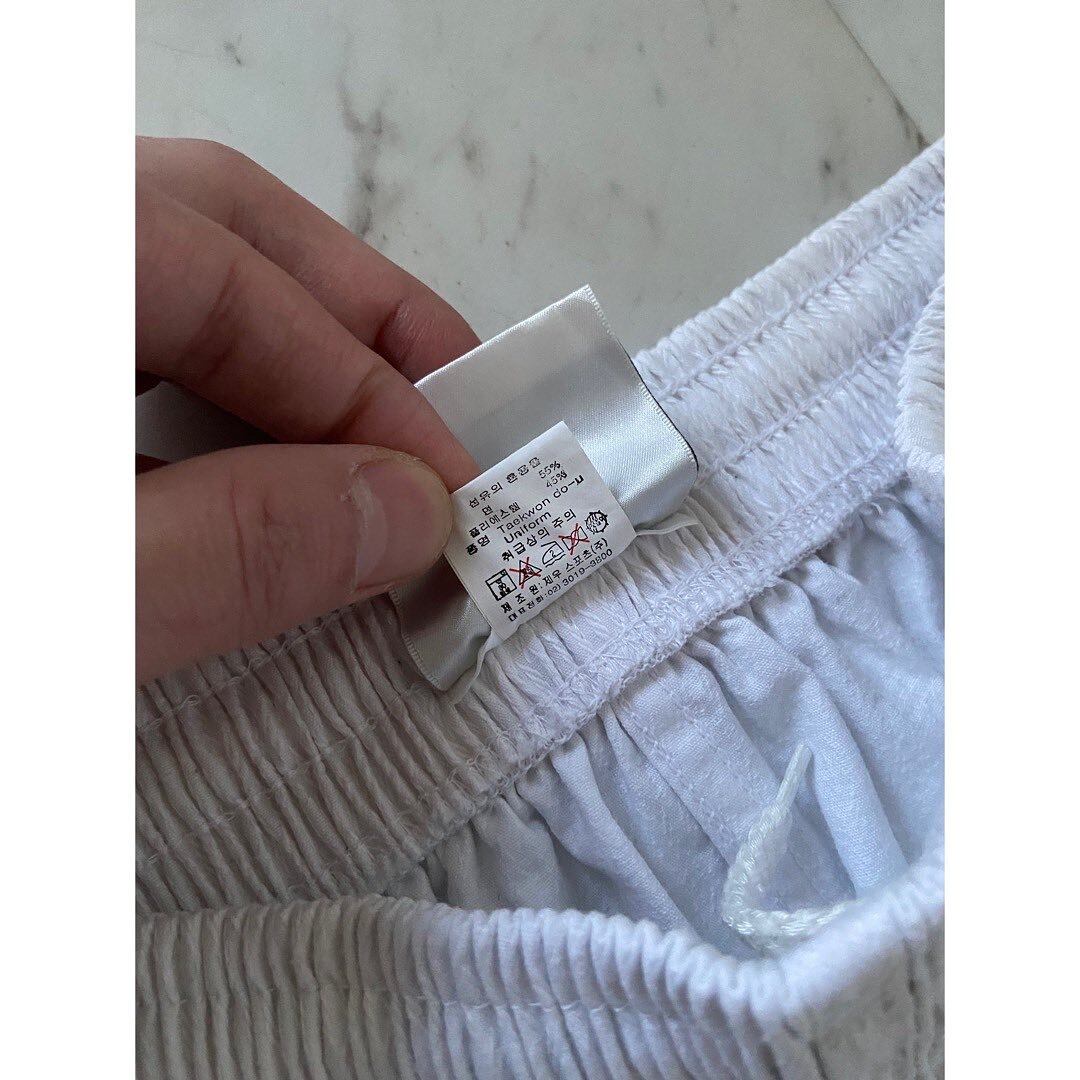 テコンドー用のパンツ 動きやすい様にかなり太めに作られています コットンポリの面白い織りの頑丈な生地