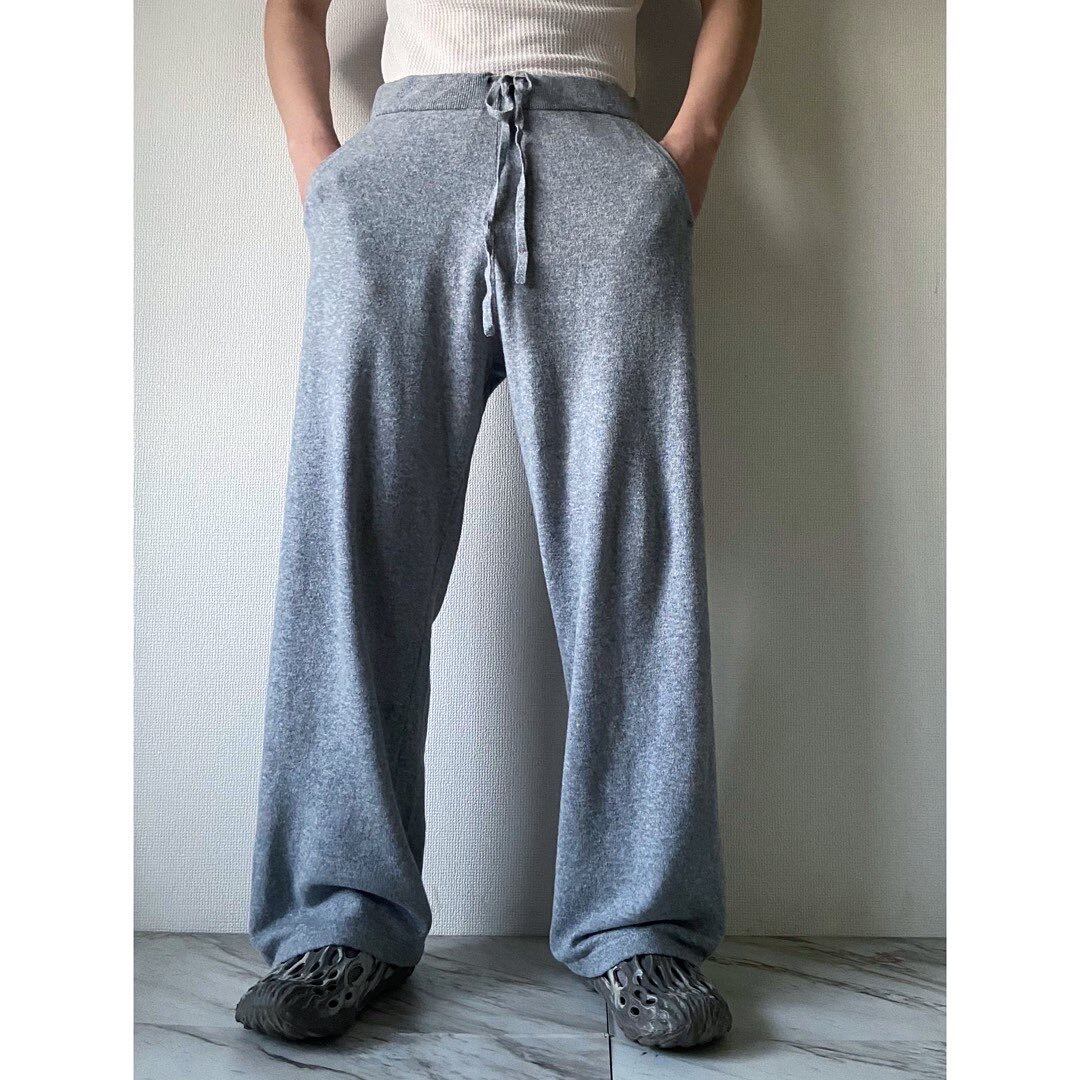 霜降りグレー コットンアクリルナイロンのニットパンツ カシミヤが混じってると錯覚するほど肌触りが良いです