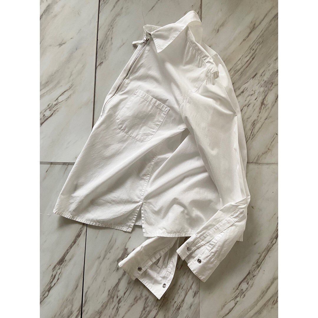 白のワイシャツなのに、シルバージップ+トップスナップボタンの変わり種