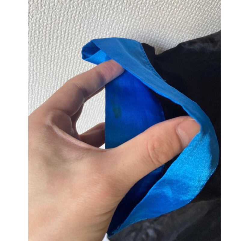 ブラック×ブルーの高配色 胸、バックにドカンと立体的なロゴ パイピング付きのポケ付き