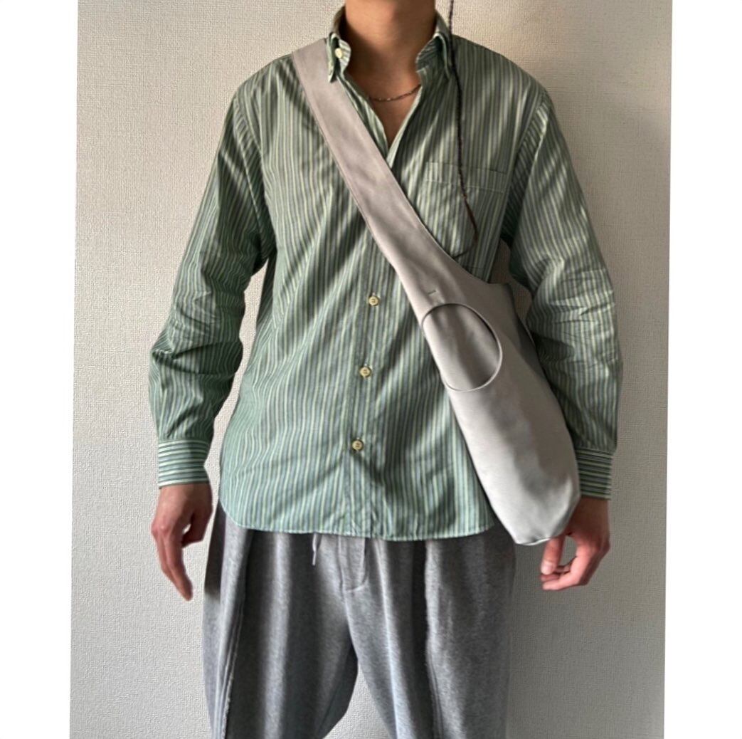 "ちょうど良いサイズ" light green cotton stripe shirt