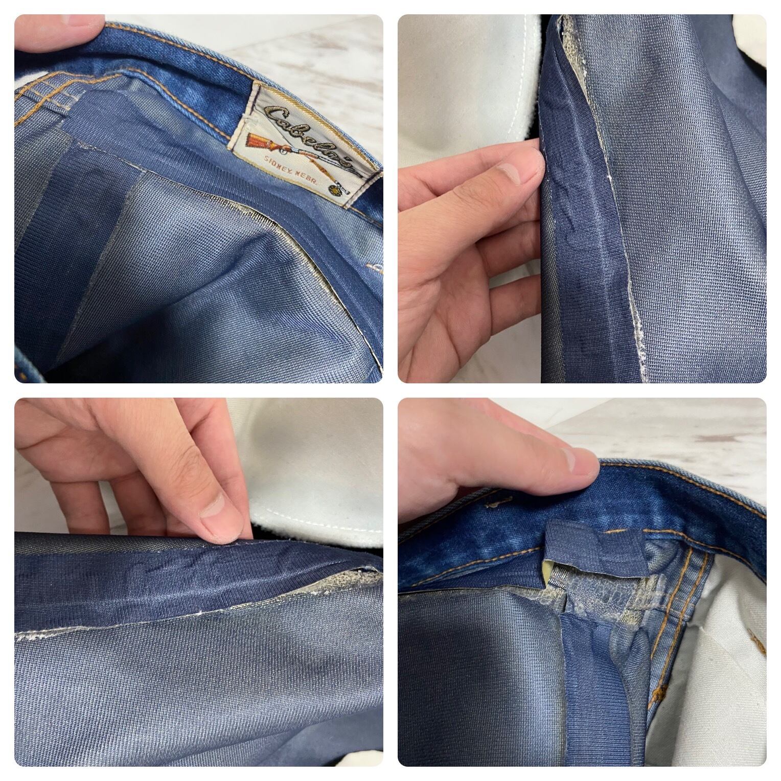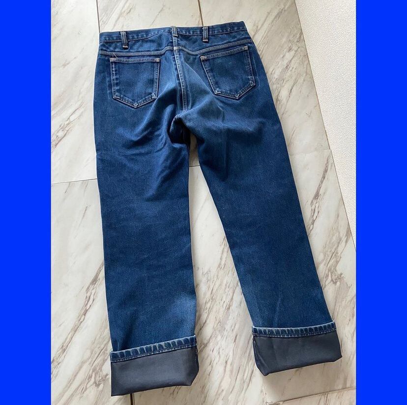 size : 表記-(実寸m〜l程度)ウエスト84股上30(ウエスト最上部から計測しています)股下79腿幅30サイドステッチ内側までで28程度裾幅22.5サイドの全長103
