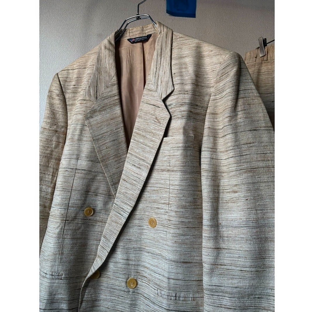 dead stock ? 80s crafted in usa silk ivory tailored jacket & pants 2-piece set up