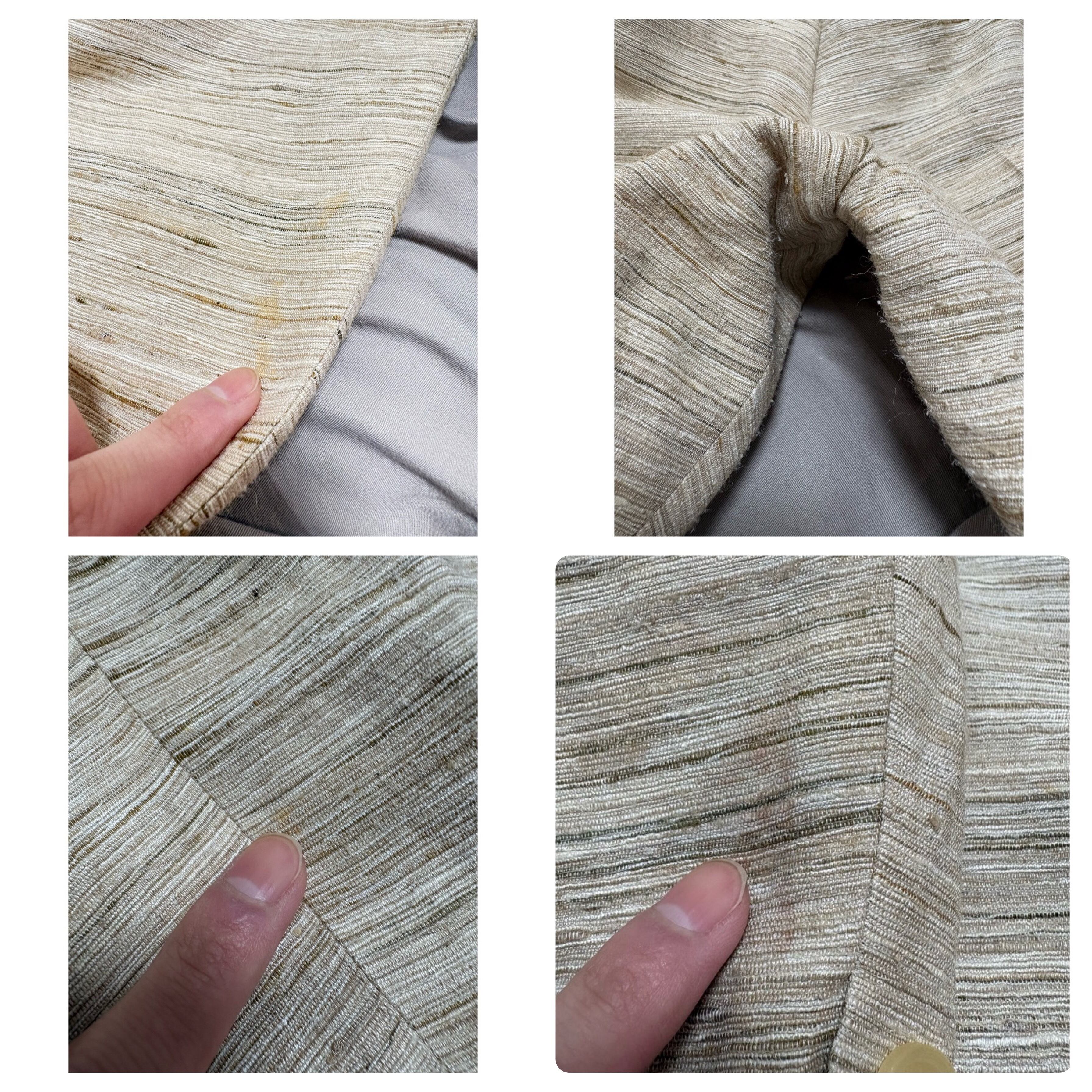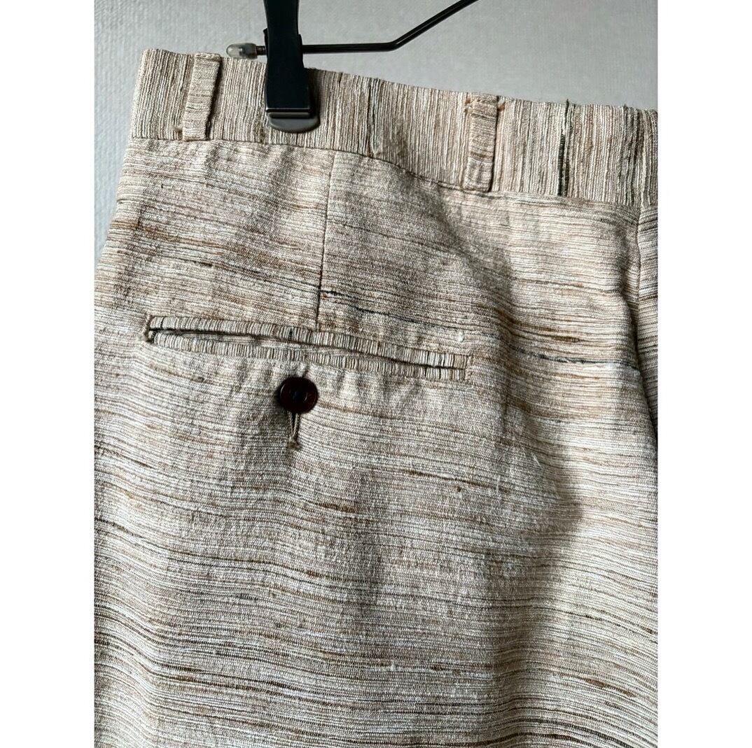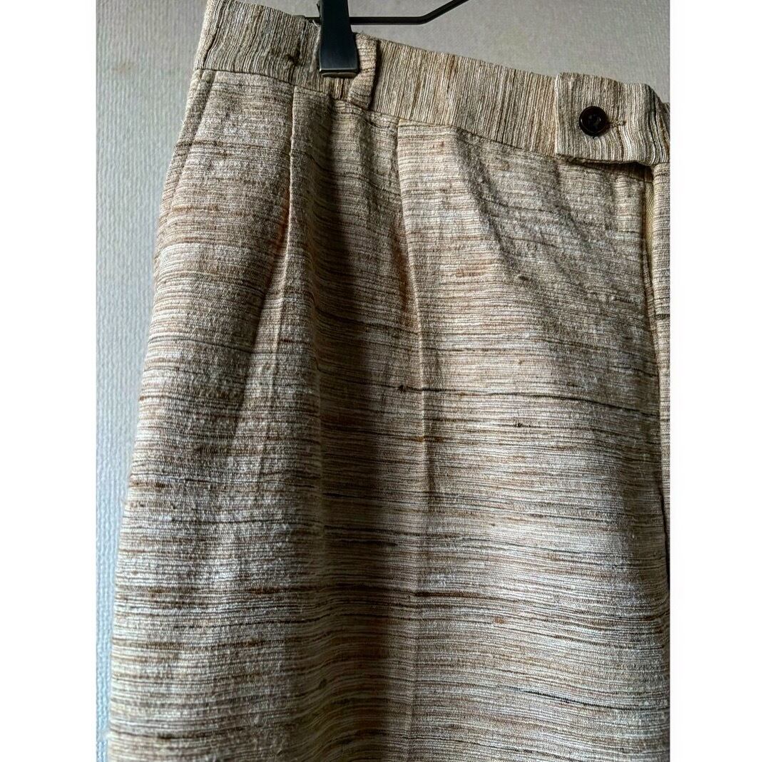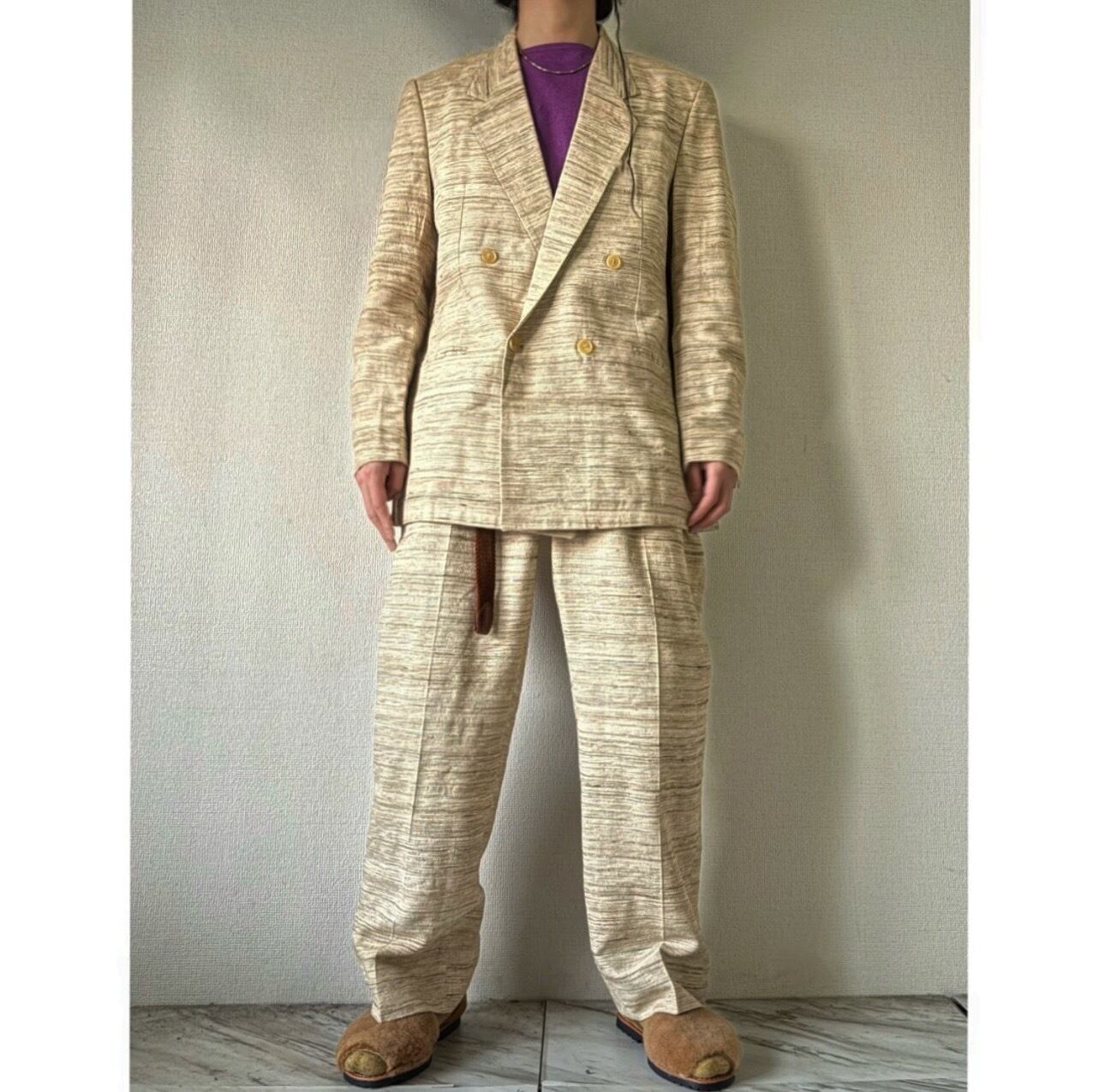 オールドテーラードにしては珍しい明るい色味 アイボリーメインで横線の筋がランダムに入った面白い生地 ブラック、ブラウン、ベージュの生地が織り込まれています