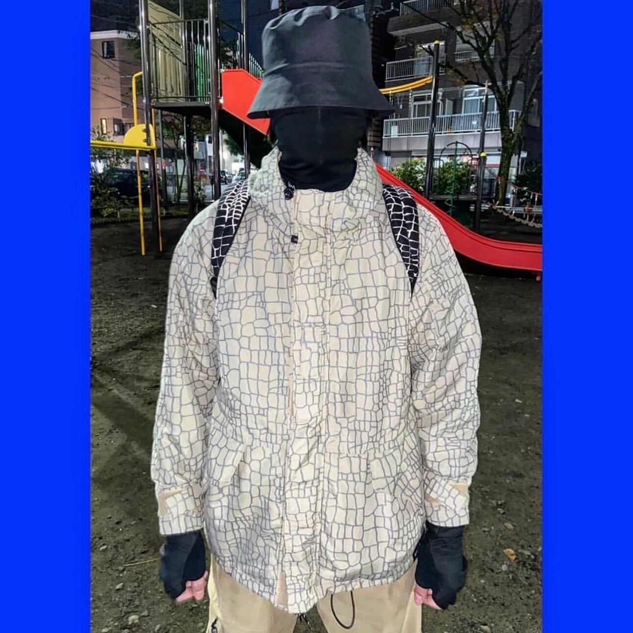 全面にスパイダーウェブのリフレクタープリント(リフレクター機能は失われています) サンドベージュにシルバーリフレクターが映えます