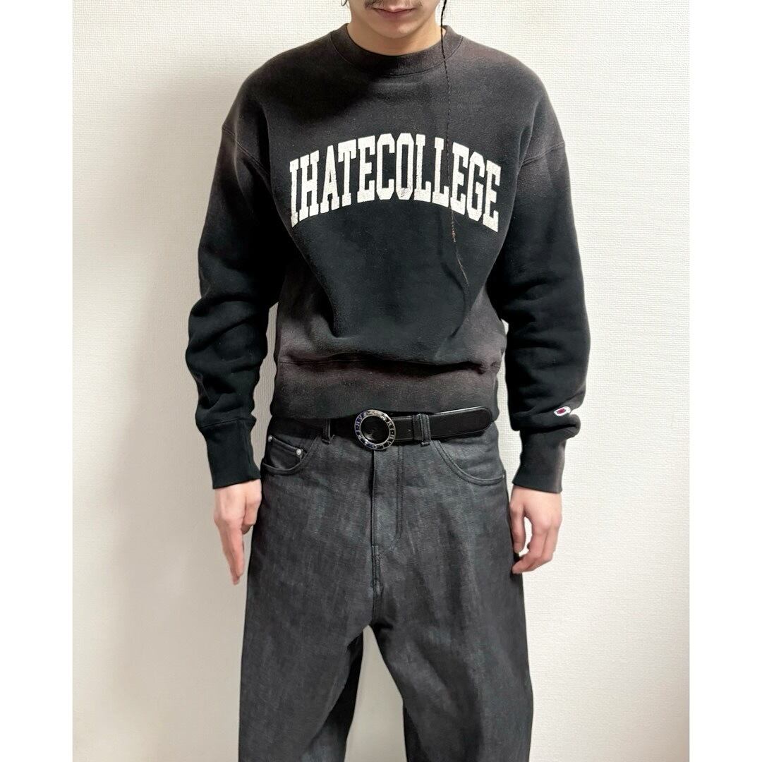 50年代のスウェットシャツを彷彿とさせる極端な短丈に、長いリブにアンバランスなカレッジロゴと袖先ロゴ