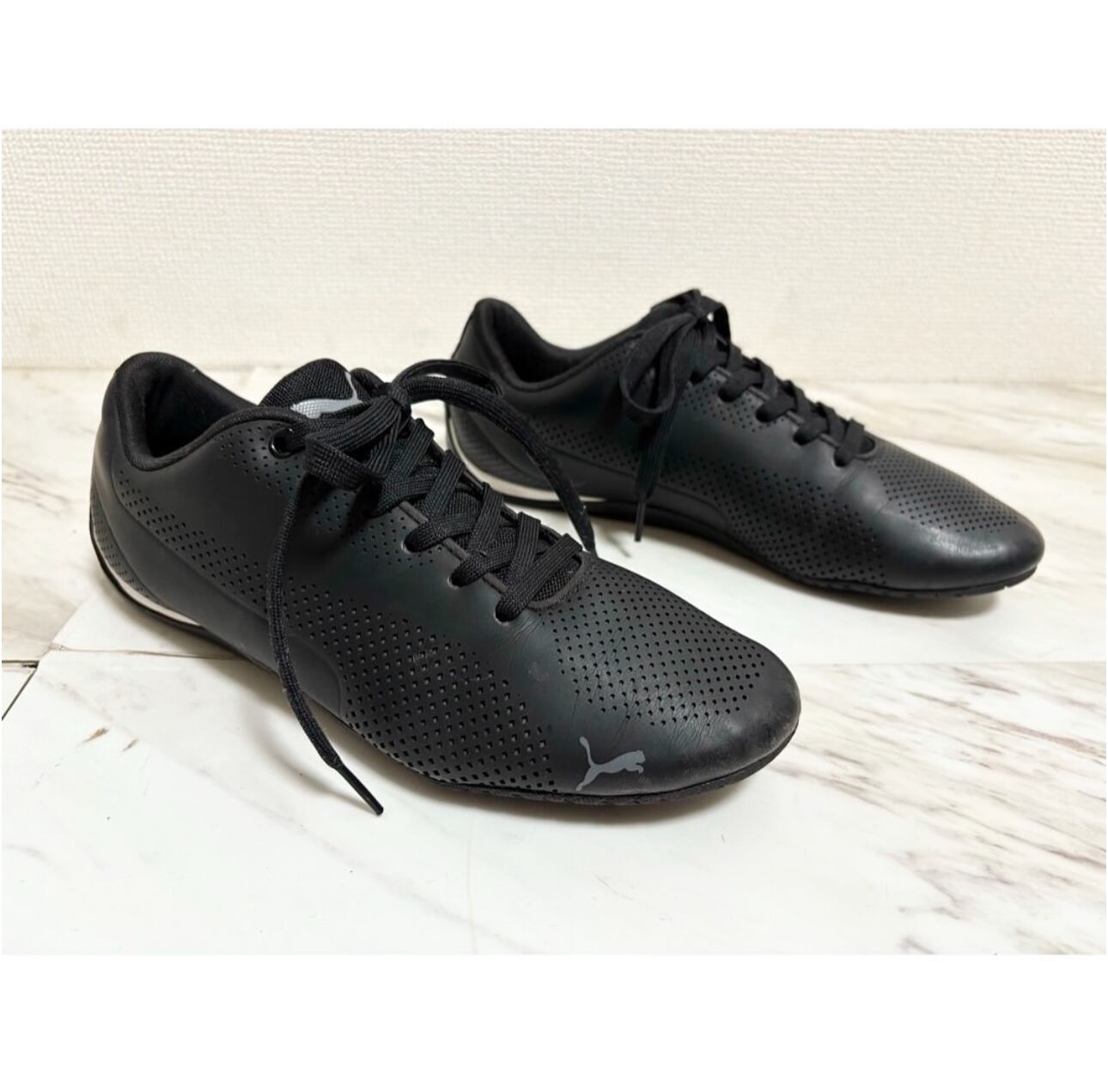 puma drift cat black leather driving shoes
