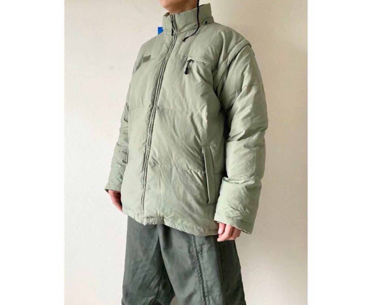 デタッチャブル仕様 アーム部分は外すことも可能でベストとしても楽しめます 所々のジップポケットも良い雰囲気 袖口はセージグリーンのリブ仕様