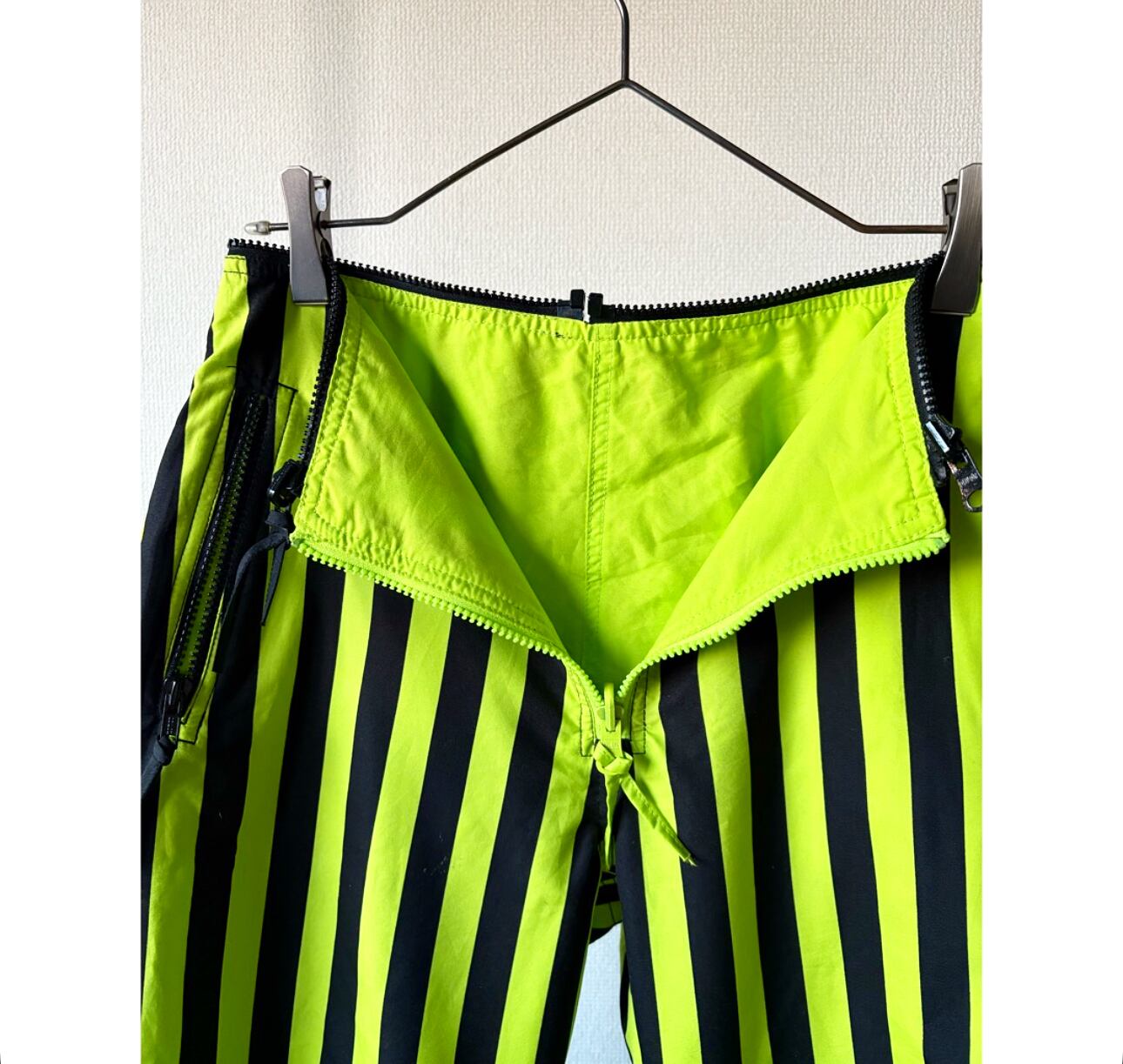 黄緑色とブラックのストライプが映える、マッドなポリエステル